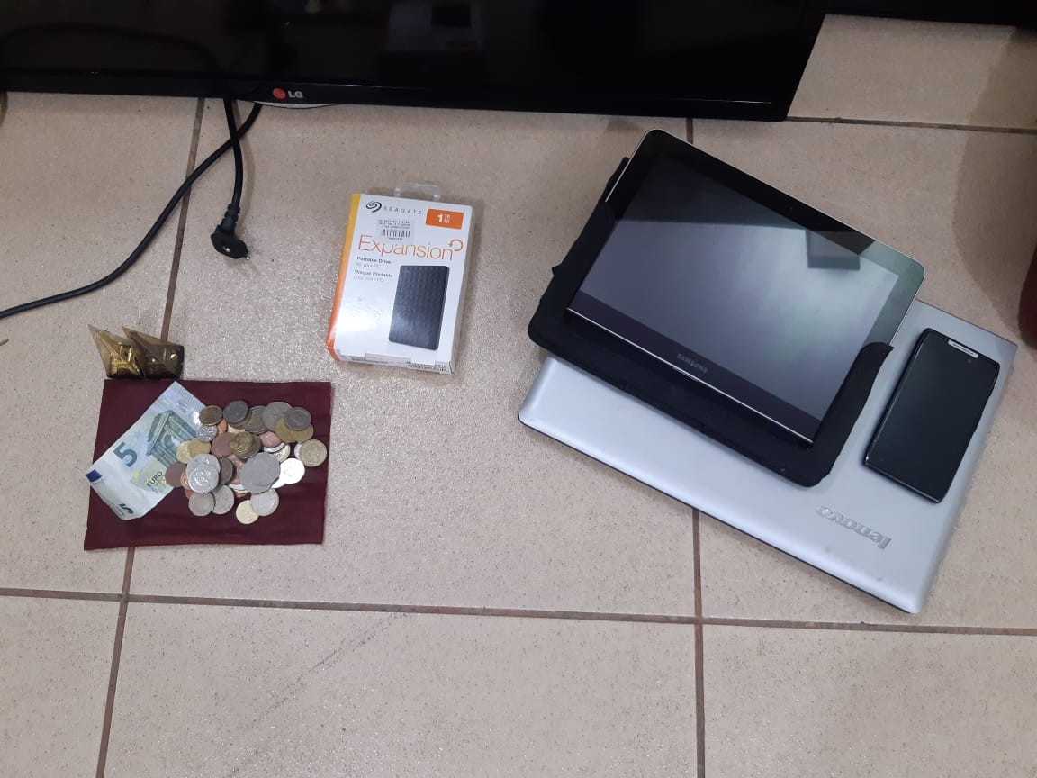 Segundo informações, uma equipe de  Força Tática  estava em patrulhamento pela Rua Hipólito José da Costa x Rua José Lemes Marques avistou um indivíduo,  que ao notar a viatura dispensou uma sacola que estava em sua mão. Foi  realizado abordagem e constatado que na sacola havia uma nota de 5 euros e algumas moedas estrangeiras. Indagado a respeito da origem, o mesmo informou que havia furtado uma residência próximo ao local e que havia omiziado os produtos do furto em uma Fiat Strada que ficava estacionada próximo a residência.