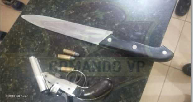 Segundo boletim de ocorrência, por volta da 1:00 a viatura 187 da Força Tática estava em patrulhamento preventivo, quando próximo de um posto de combustíveis avistou Izaque Aparecido Miguel, de 22 anos, ele foi abordado e na sua cintura os policiais localizaram uma garrucha calibre 32, a qual estava municiada e com numeração suprimida. Ainda de acordo com boletim de ocorrência, o indivíduo aparece nas filmagens de um deposito de bebida momento que praticava um roubo. Ele estava trajando a mesma blusa e acabou confessando que iria assaltar o posto de combustíveis.