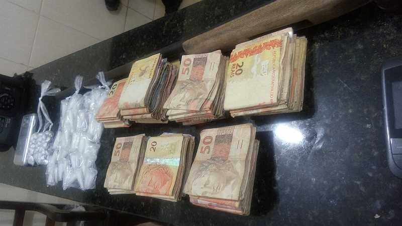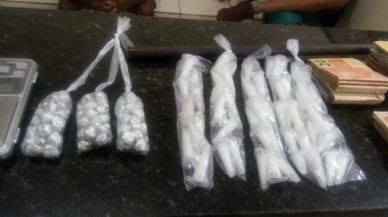 Segundo informações, a PM foi verificar denúncia que no condomínio 4 havia um homem comercializando drogas. Em poder das características do suspeito, os policiais da Força Tática conseguiram realizar a abordagem. Ainda de acordo com a PM, Uelison Alexandrino Costa, de 30 anos, franqueou a entrada no apartamento e foram localizados R$ 6.448,00. ( Total de objetos apreendidos 65 pedras de crack, 78 pinos de cocaína, 01 celular, 01 filmadora, 01 balança de precisão, aderno com anotação do tráfico).
