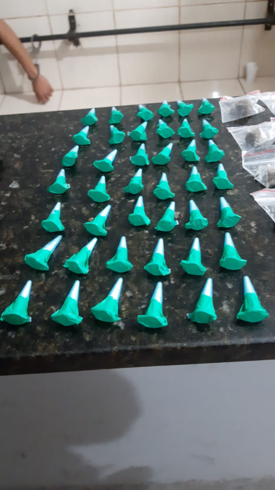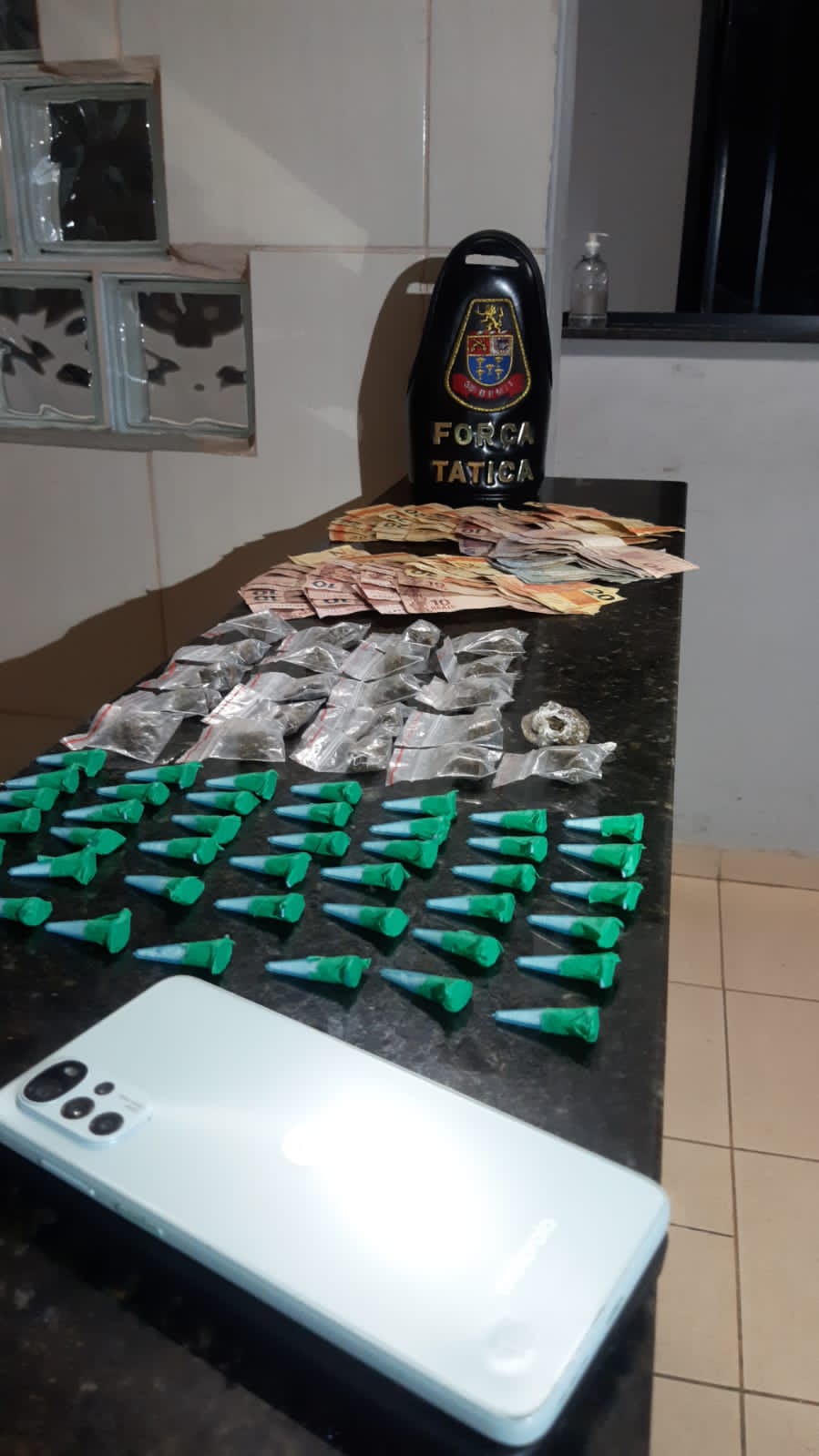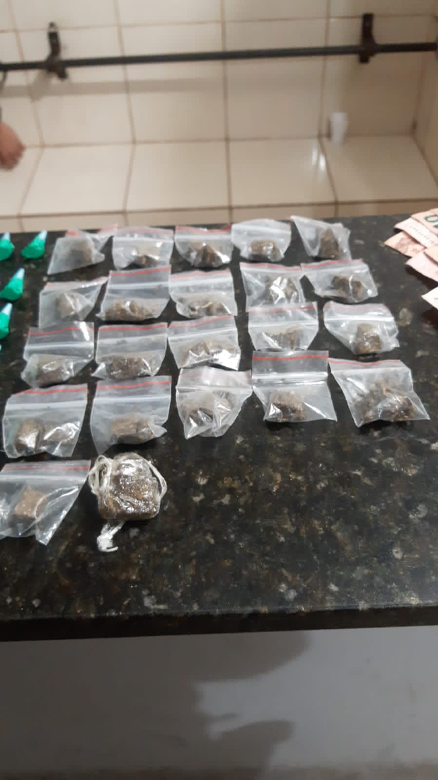 Segundo informações,  uma viatura da Força Tática, composta pelo sargento  Caon,  cabos Vinicius,  Izomar e soldado Ederson estava em patrulhamento,  quando um indivíduo saiu correndo e adentrou a uma casa. Em  ato continuo o mesmo foi acompanhado e abordado na casa dos fundos.  Indagado se havia algo de ilícito no interior da residência, ele  informou que não e que poderia fazer a verificação em sua casa. Ao adentrar foi localizado em cima do armário da cozinha uma sacola plástica branca contendo 42 pinos  de cocaína (28gr), 22 porções de  maconha (36gr) e R$885,00.