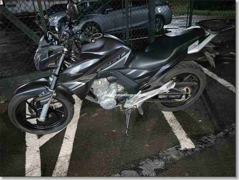 De acordo com boletim de ocorrência, policiais militares da Força Tática estavam em patrulhamento preventivo pela Av. José Antônio Santili, região do Shopping Iguatemi, São Carlos-SP, quando avistaram um sujeito parado ao lado de uma Honda CB Twister. A moto estava sem placa e o indivíduo foi abordado. Ao ser indagado o jovem disse que havia comprado a moto por cerca de R$ 3.500. O chassi e motor estavam com numerações suprimidas e a ocorrência foi encaminhada para a Central de Polícia Judiciária, onde a moto foi recolhida ao Pátio Municipal e o individuo liberado.