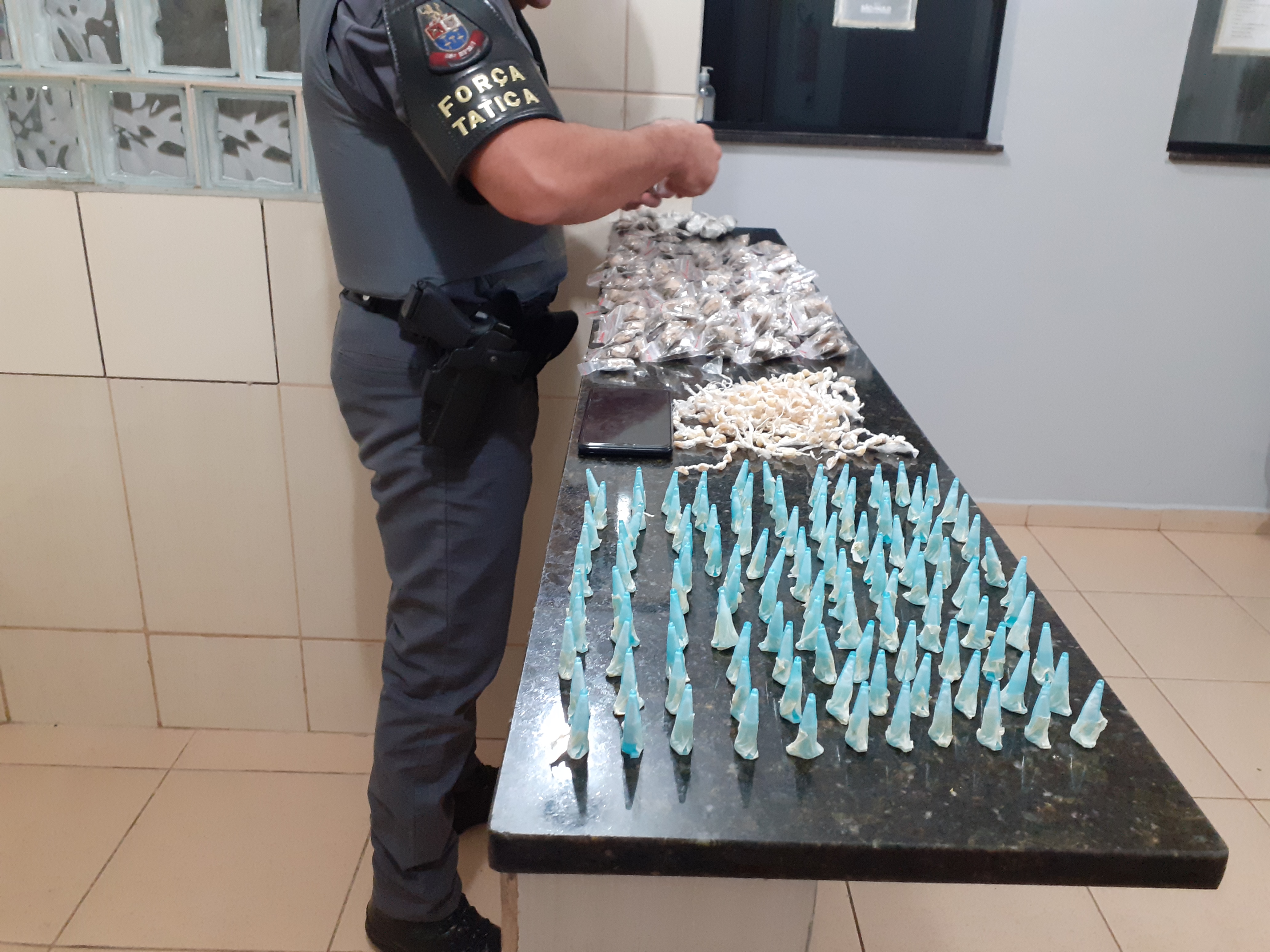 Um menor de 17 anos foi detido pela Força Tática nesta noite de quinta-feira,  06/05/2021, com uma grande quantidade de drogas na Rua da Paz, bairro Vila Isabel, São Carlos-SP.