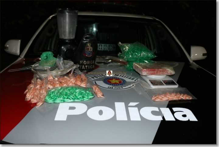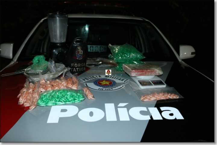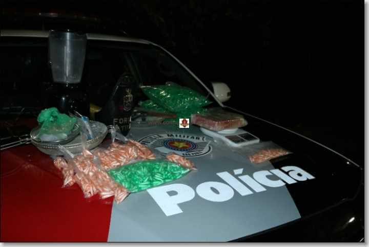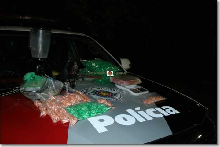 De acordo com informações, o sargento Strozze, cabos Tiago, Prado e soldado Wellington foram para o local e detiveram os menores, ambos de 17 anos e Vinicius Brugnera Gonçalves, de 20 anos. Dentro do imóvel, o qual não é habitada e segundo a PM, estava sendo usado somente para o embalo drogas, foi localizado um quilo de cocaína (tijolo) e 627 pinos de cocaína prontos para a venda. O trio foi encaminhado ao Plantão Policial, mas até o fechamento desta matéria a ocorrência não havia sido definida.