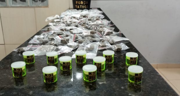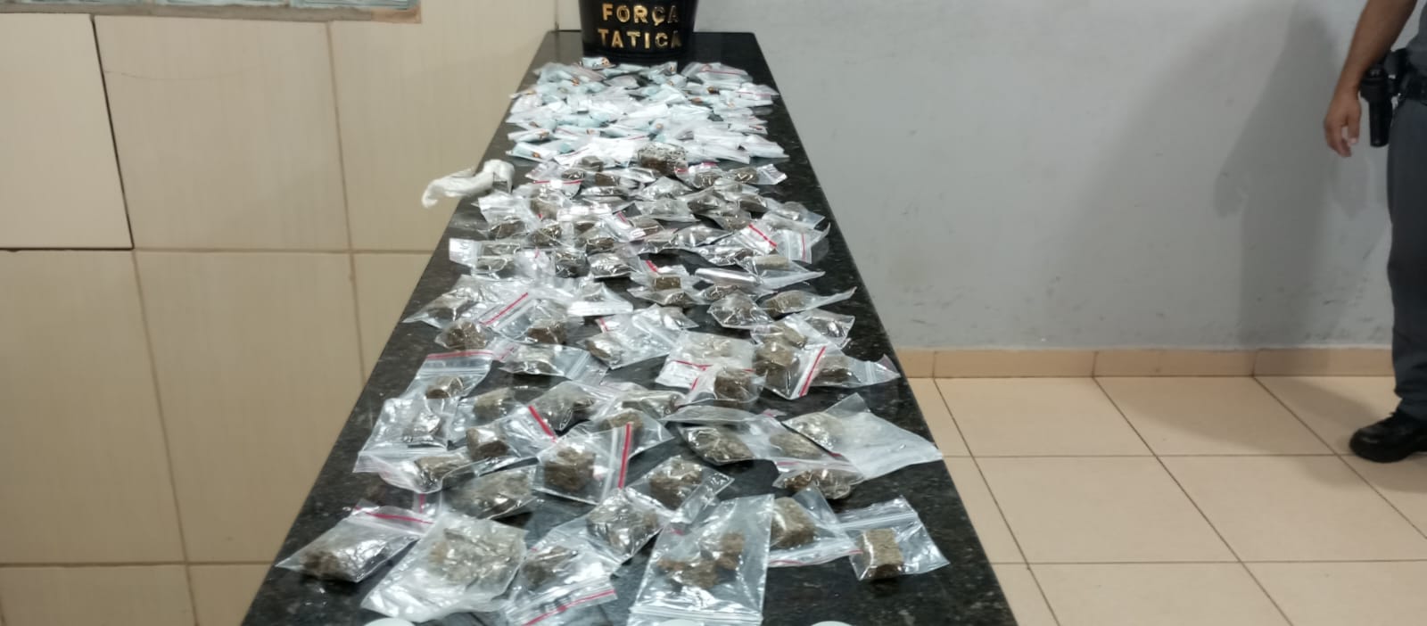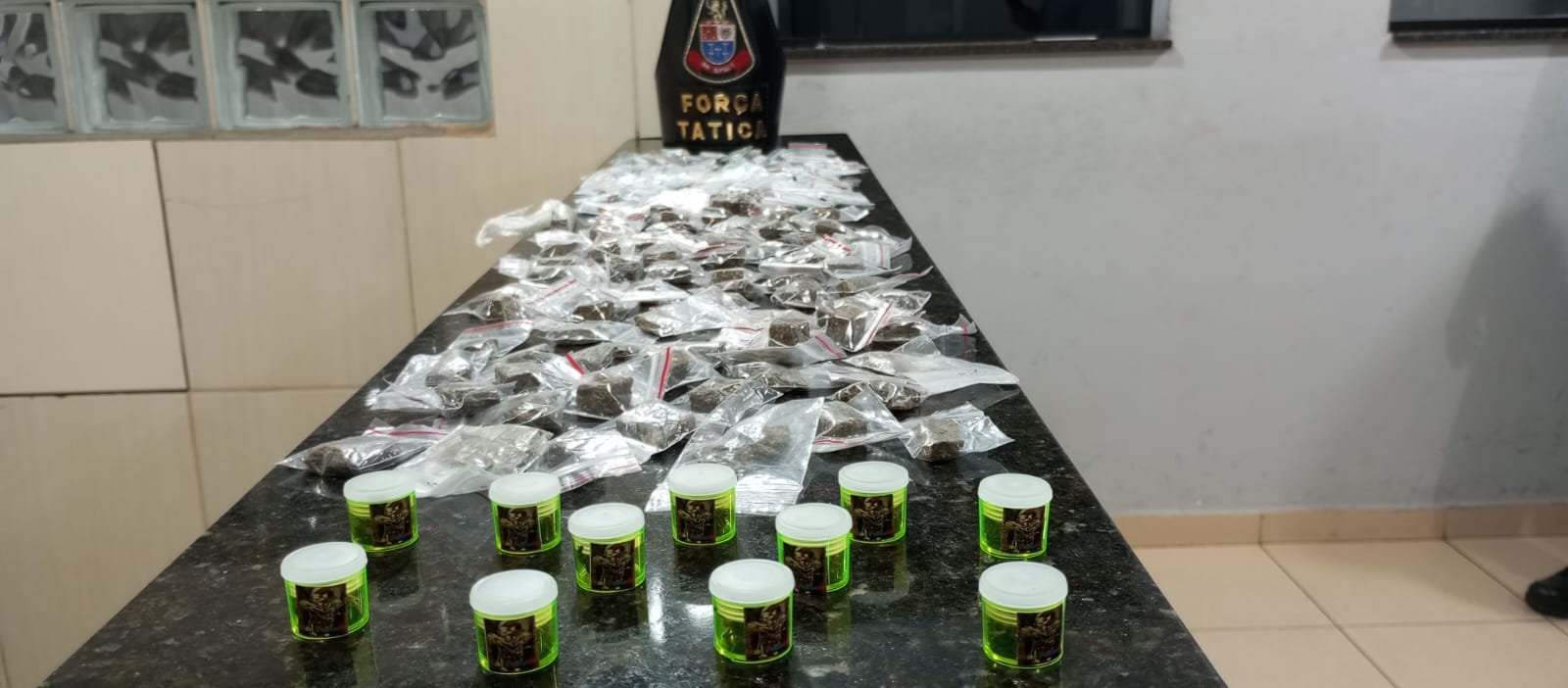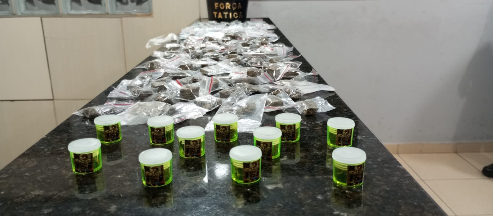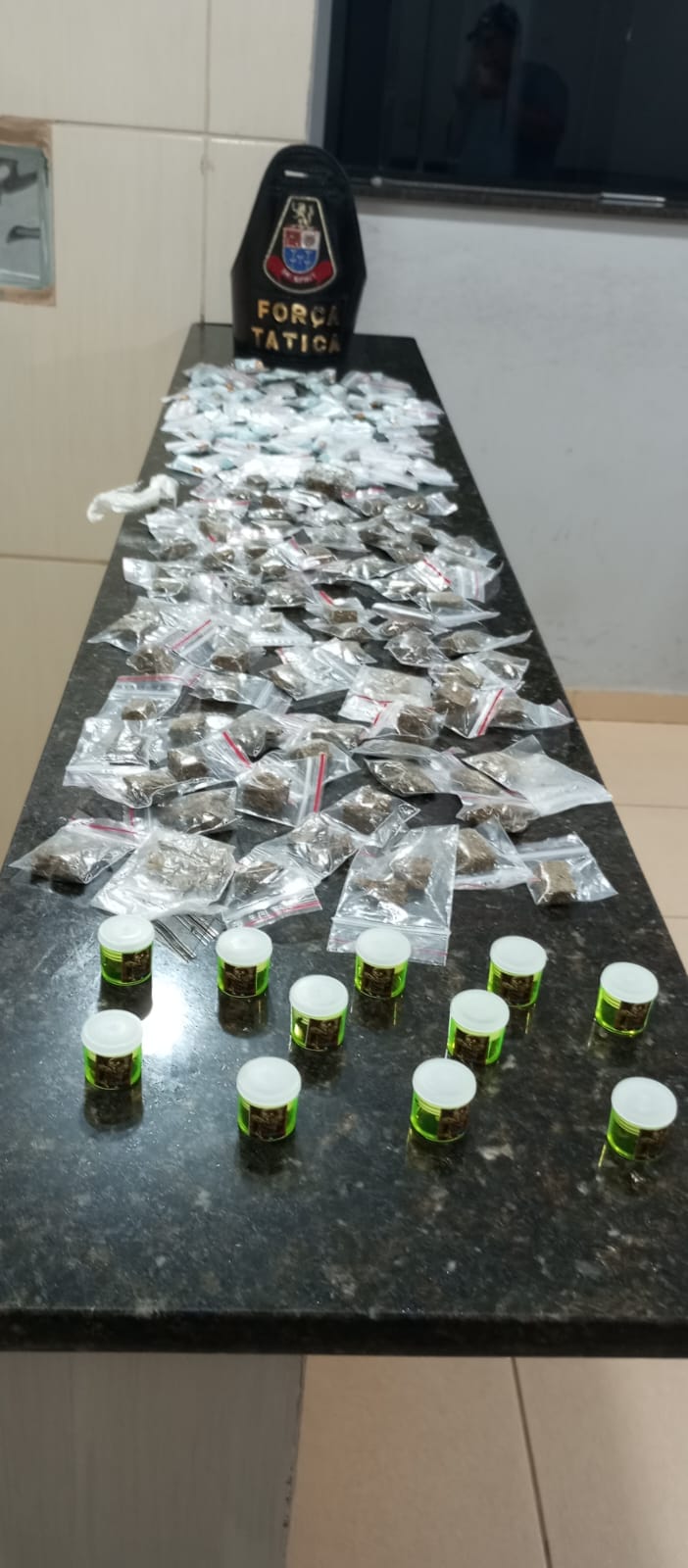 De acordo com informações, eram por volta das 19h50, o sargento Parente, cabo Moda e soldado Stivanelo estavam em patrulhamento , quando avistaram o adolescente de 17 anos em um local conhecido como ponto de tráfico. Ele foi abordado e em revista pessoal, foram localizadas duas porções de maconha. Nas proximidades foram localizadas mais drogas. No total foram apreendidos 83 pinos cocaína, 83 porções de maconha e 11 porções de skank ( maconha mais pura). O menor foi encaminhado para a Central de Polícia Judiciária, onde o boletim de ocorrência foi lavrado e ele foi entregue para a mãe.