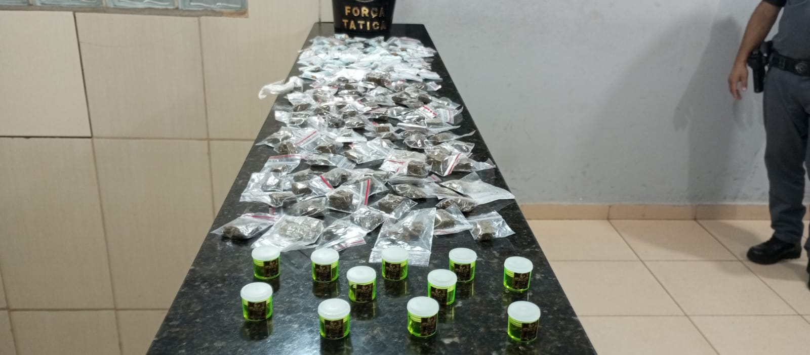 Um menor de idade foi detido pela Força Tática e drogas foram apreendidas nesta noite de terça-feira, 16 de janeiro de 2024, na Rua José Quatrocchi, bairro São Carlos V, São Carlos-SP.
