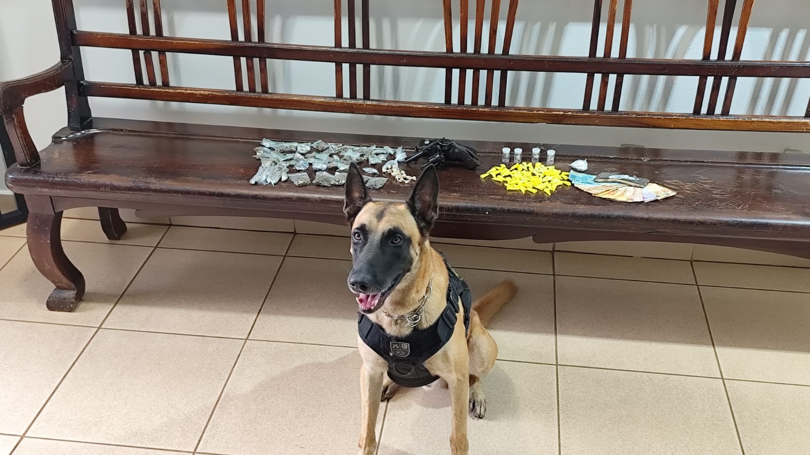 De acordo com informação, os táticos de São Carlos estavam em operação em Ibaté, quando os policiais avistaram um veículo Gol transitando pela Rua Porto Ferreira. O carro transitava no sentido oposto da viatura e estava com os vidros encobertos por insulfilme. Quando os ocupantes do veículo perceberam que seriam abordados, o passageiro jogou para fora uma sacola contendo drogas. A dupla foi abordada e com o passageiro foi encontrado um revólver calibre 32, marca INA, sem numeração aparente, capacidade para 06 (seis) disparos, contendo uma munição picotada. Já com o condutor, nada de ilícito foi encontrado.