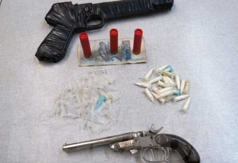Segundo informações da PM, uma equipe da Força Tática estava em patrulhamento pelo bairro, quando os policiais avistaram um rapaz em atitude suspeita. Ele foi abordado e com o mesmo foram localizados cinco pinos plásticos com cocaína, trinta e dois pinos vazios, munições, um simulacro de arma de fogo e uma garrucha calibre 38.