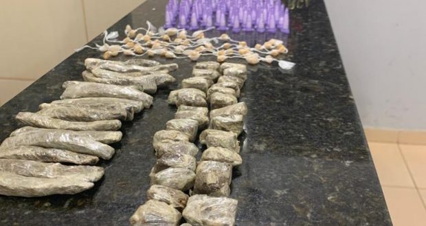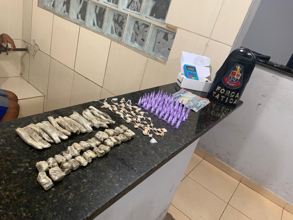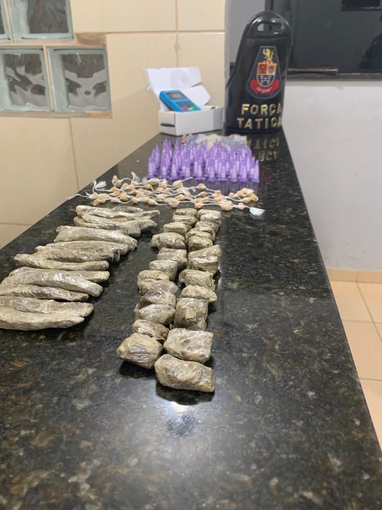 Segundo informações, o sargento Wanderson, cabo Jefferson e soldado Stivanelo estavam em saturação pelo bairro Jardim Beatriz , quando avistaram C.M.M.S, de 29 anos, o qual estaria vendendo drogas. O suspeito ao avistar a viatura, teria jogado no telhado uma sacola com drogas. O indivíduo foi abordado e em revista pessoal, foram encontrados em suas vestes 07 micro tubos contento cocaína. Os policiais resgataram a sacola e no interior tinha mais drogas. A ocorrência foi encaminhada para a Central de Polícia Judiciária, mas até o fechamento desta matéria, a situação do mesmo não havia sido definida.