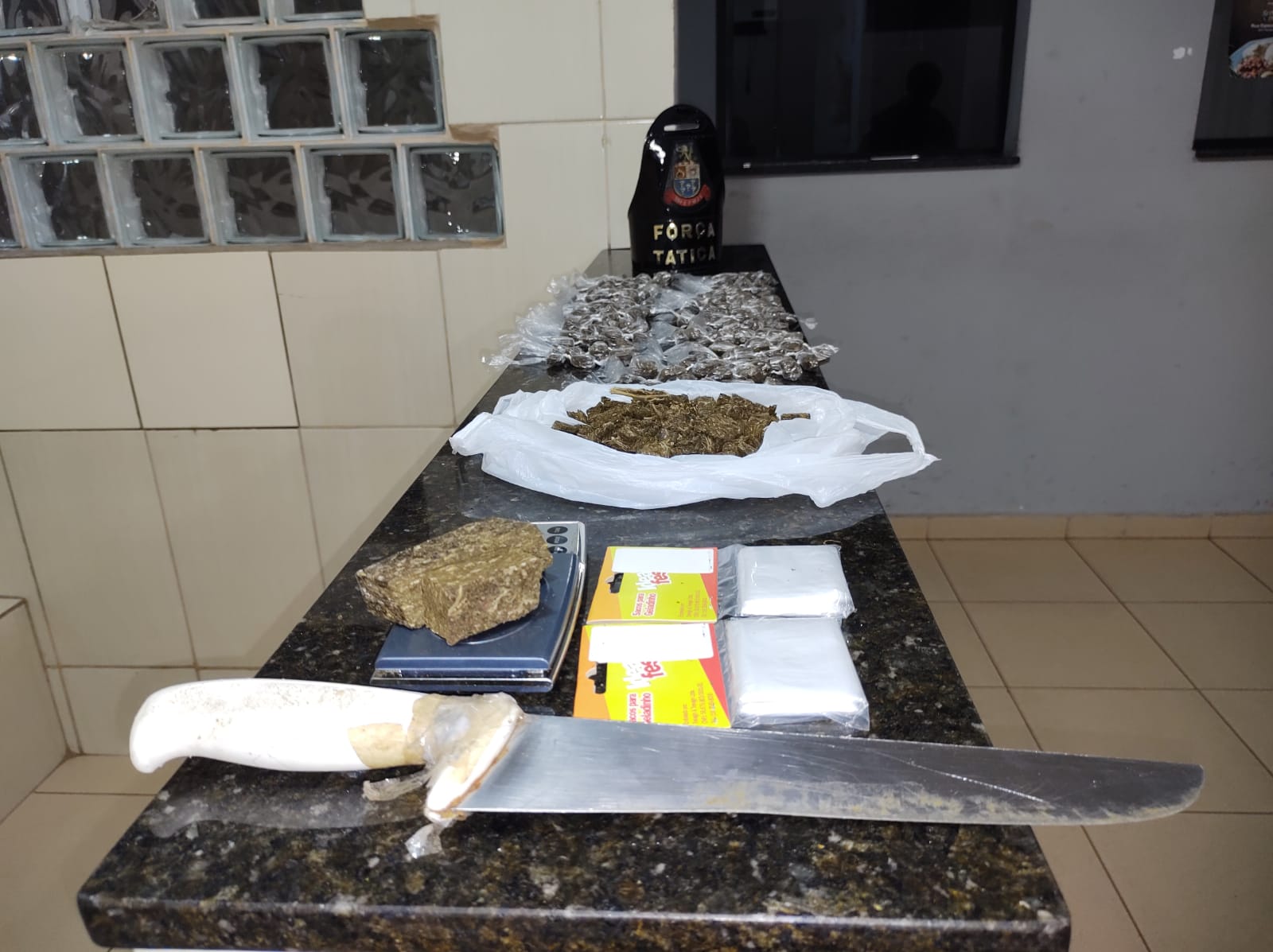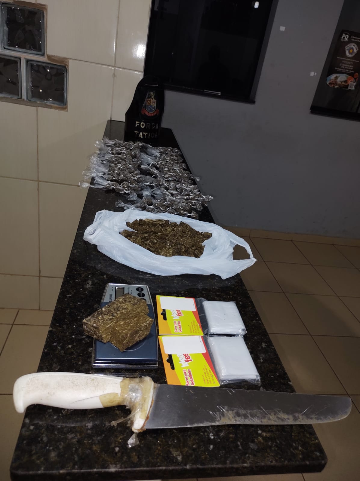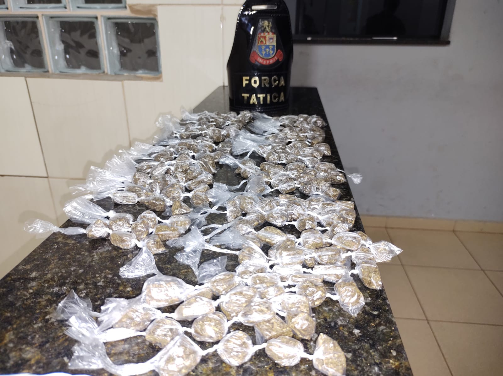 De acordo com informações, o sargento Strozze, o sargento Alcântara, o cabo Carlos e cabo Prado estavam em patrulhamento preventivo, quando avistaram um sujeito saindo de uma casa, ao lado de um comércio. O jovem quando viu a equipe, ficou muito nervoso. Ele foi abordado e acabou confessando que tinha drogas na casa. Neste local, os policiais encontraram 213 porções de maconha, prontas para a venda e uma porção maior. K.H. C, de 18 anos, foi encaminhado para a Central de Polícia Judiciária, autuado em flagrante de tráfico de drogas e recolhido ao Centro de Triagem de São Carlos.