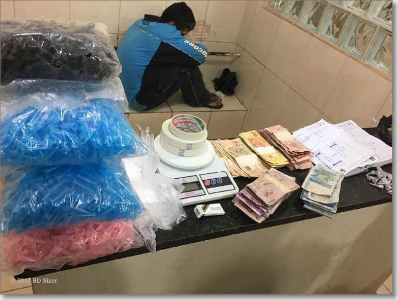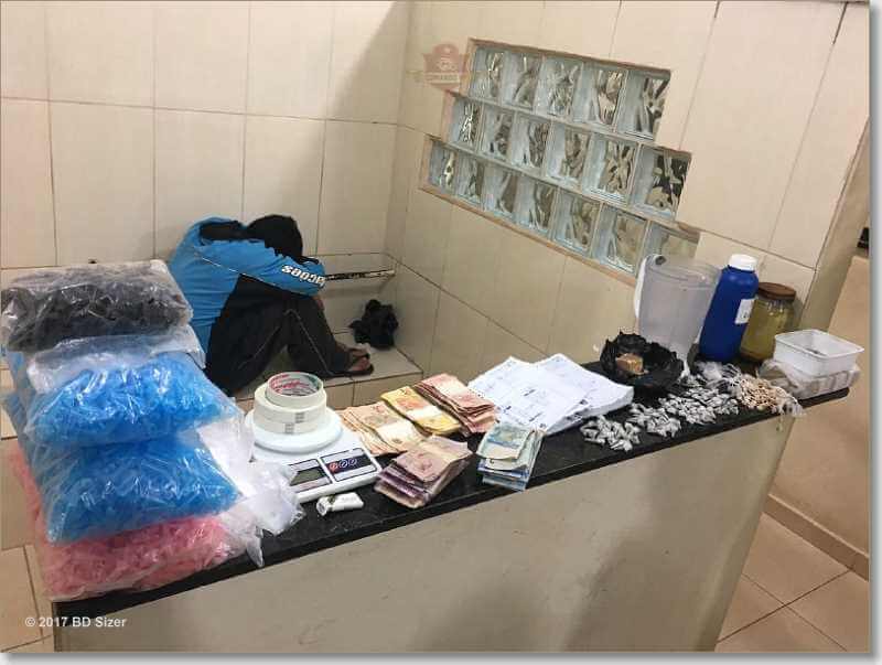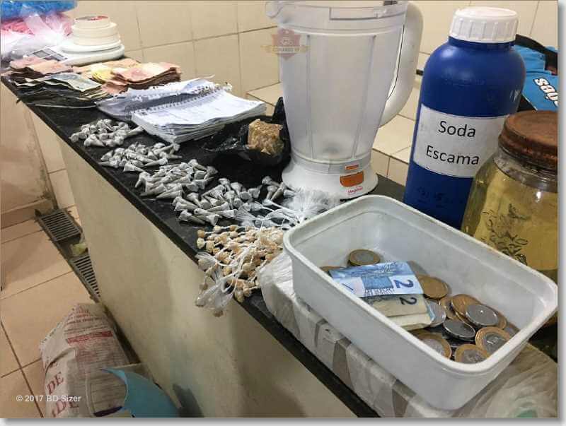 Segundo informações, o tenente Stradioto, cabos Biazzi, D. Lazarin e J. Lima estavam em patrulhamento e depararam com indivíduo saindo da residência. Ao avistar a equipe tentou evadir-se para dentro da casa desobedecendo ordem de parada. Fato este que fez com que os policiais adentrassem ao imóvel e realizassem a abordagem. No local foi localizada a quantia R$ 2.586,25, 143 pedras de crack prontas para a venda, 78 pinos de cocaína, 01 pedra bruta de crack, 01 tijolo de cocaína, balança digital, materiais para embalar entorpecentes e materiais para refino do entorpecentes