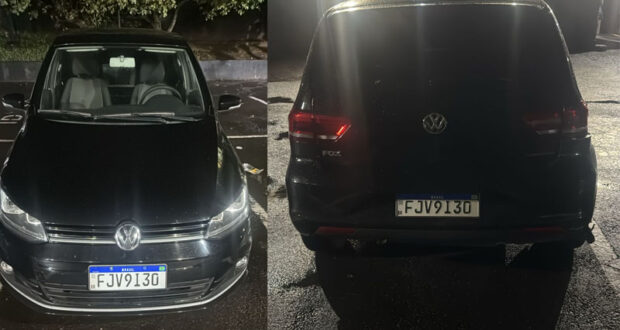Através dos sinais identificadores do veículo, constatou-se que o chassis estava lixado e pintado, sem qualquer numeração. Pelo número do motor, constatou que o veículo trata-se de um VW Fox, anos 2020, placas FWD2A15, produto de furto em São Paulo/SP, divergente da placa que ostentava FJV9I30, a qual consta em um veículo VW Fox ano 2015 de Suzano/SP.