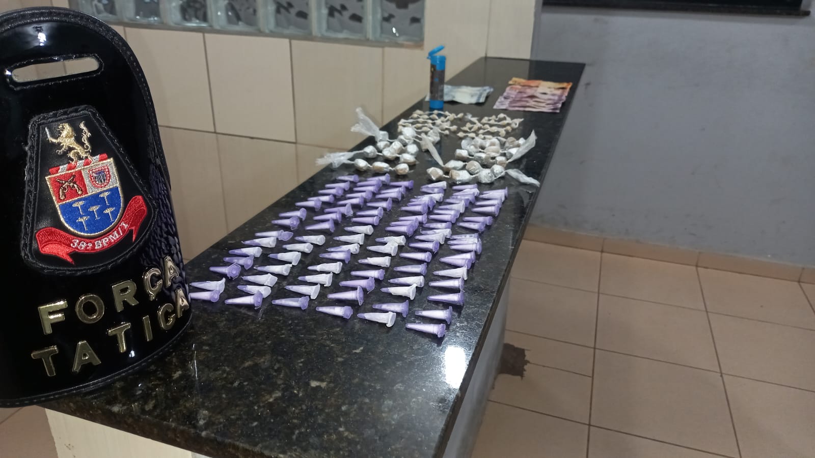 De acordo com informações, os policiais da Força Tática estavam em patrulhamento pelo referido bairro, quando se depararam com R.A.A.B, de 28 anos, entregando drogas para um motociclista. O indivíduo foi abordado e foram localizados drogas e dinheiro em seu poder. A ocorrência foi encaminhada para Central de Polícia Judiciária, mas até a publicação desta matéria, a situação do detido não havia sido definida.