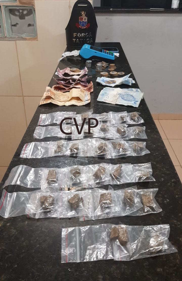 De acordo com informações, eram por volta das 22h30, uma viatura da Força Tática, composta pelo subtenente Douglas, cabo Neto e soldado Ribeiro estava em patrulhamento, momento que E.K.M.N, de 18 anos, o qual já tem passagem por tráfico de drogas e roubo, tentou fugir, mas acabou sendo detido. Em seu poder, os policiais encontraram uma sacola da cor preta contendo 27 porções de maconha e R$ 193,00. Foi dado voz de prisão ao sujeito e a ocorrência foi encaminhada para a Central de Polícia Judiciária. O delegado de plantão, Dr. Gilberto de Aquino ao tomar conhecimento do fato, ratificou a voz de prisão, autuou o detido em flagrante por tráfico de drogas e recolheu ao Centro de Triagem de São Carlos.