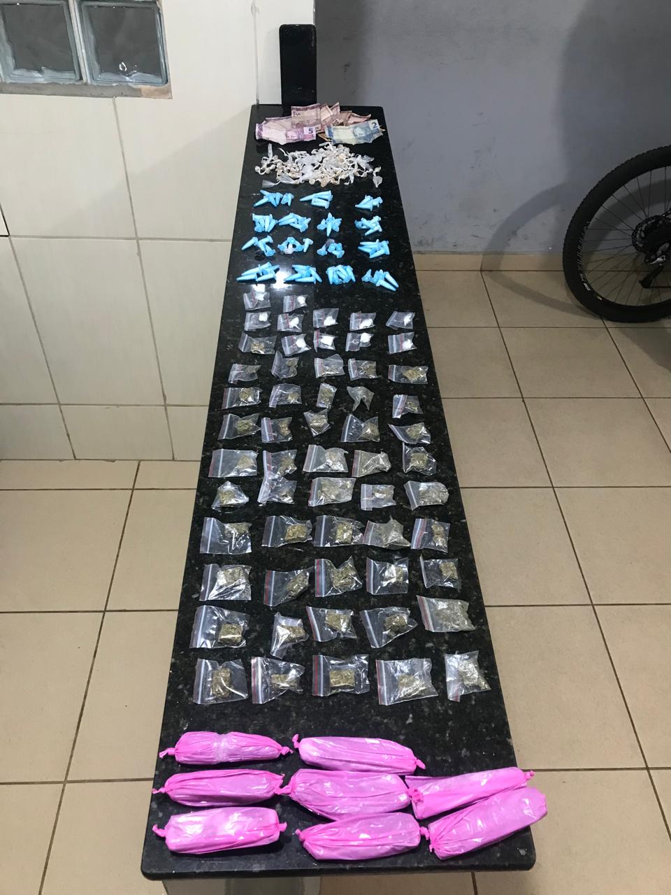 De acordo com boletim de ocorrência, o sargento Caon, os cabos Osmar, Sobral e o soldado Stivanello, estavam em patrulhamento de rotina, quando depararam-se com H.H.G.S, de 19 anos. Este foi abordado e em seu poder, foram localizadas 124 pedras de crack, 74 pinos de cocaína, 54 porções de maconha, 11 porções de haxixe e R$ 102,00.
