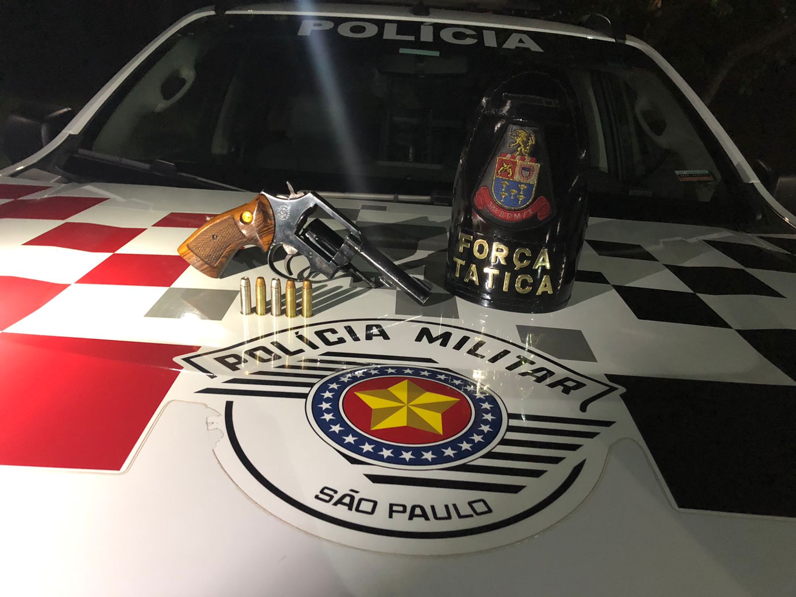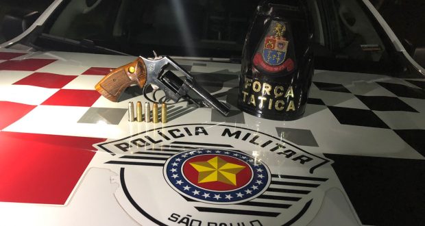 Segundo informações, uma equipe da Força Tática estava em patrulhamento preventivo, quando se deparou com um veículo Honda Civic. Seu condutor ao ver a viatura tentou estacionar rapidamente o veículo. Os policiais realizaram a abordagem e dentro do veículo localizaram um revólver calibre 38, com numeração suprimida, com 5 munições, sendo 3 intactas e 2 picotadas. M.C.S, de 24 anos, foi conduzido ao Plantão Policial, onde ficou à disposição da justiça. De acordo com a PM, ele disse que a arma era para defesa pessoal, tendo em vista ter sido vítima de tentativa de homicídio alguns meses atrás.
