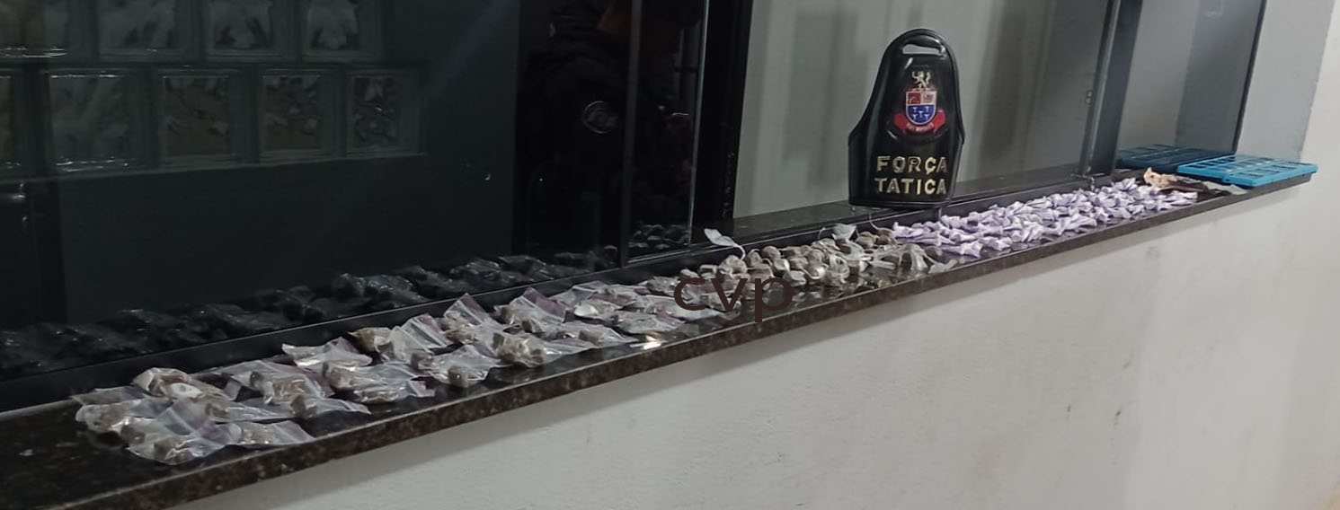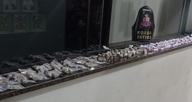 Policiais militares da Força Tática detiveram um adolescente de 16 anos com drogas nesta noite de segunda-feira, 29 de maio de 2023, na Rua José Quatrochi, bairro Arnon de Melo, São Carlos-SP.