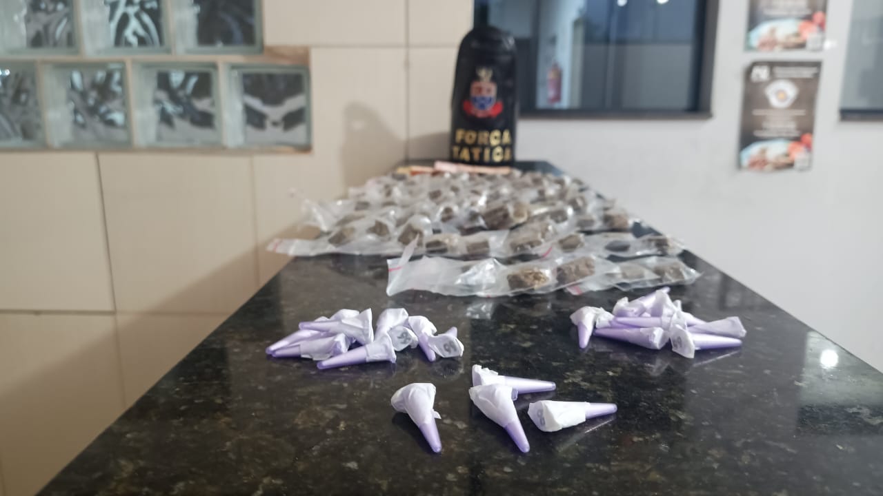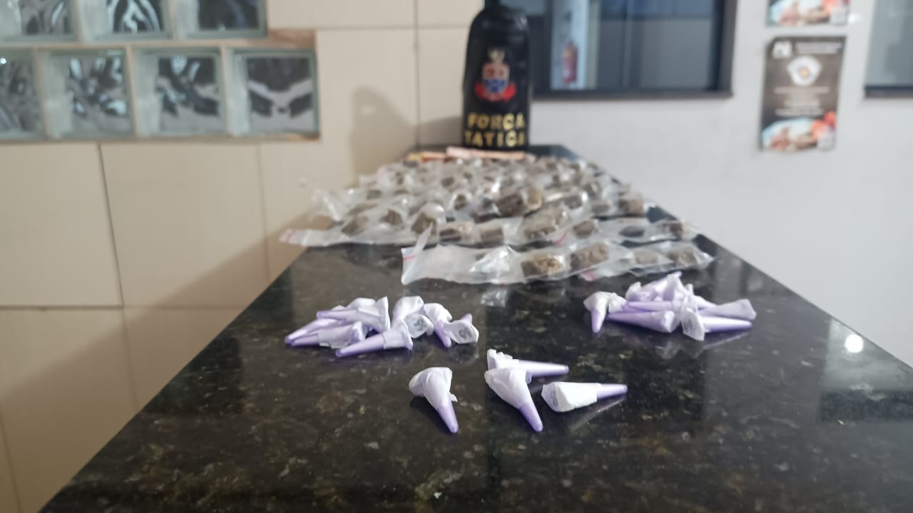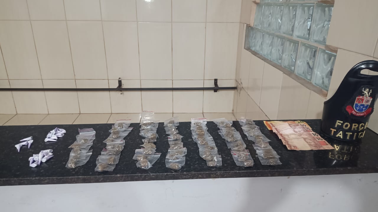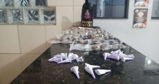 De acordo com informações, o sargento Wanderson, o cabo César e soldado Ederson estavam em patrulhamento preventivo, quando avistaram o menor transitando na via pública. Este quando viu a viatura, mudou o percurso que seguia. Diante da suspeita, foi realizada a abordagem e localizados em sua mão 24 porções de cocaína e no bolso R$ 60,00. Ao seu lado, no chão, foi encontrado uma sacola preta contendo 65 porções de maconha. O menor acabou confessando que estaria na pratica de tráfico. Ele foi encaminhado para a Central de Polícia Judiciária, onde ficou à disposição da família.