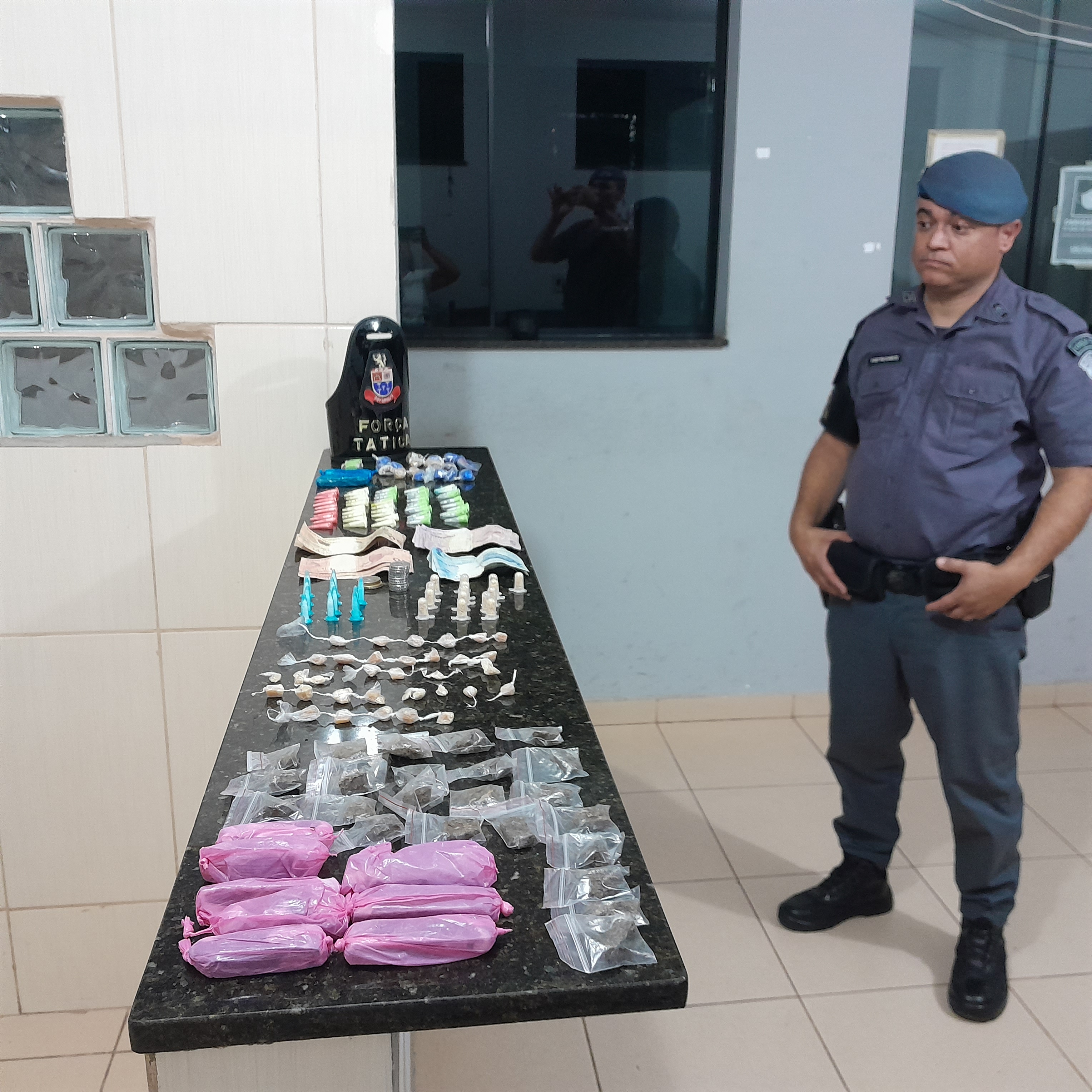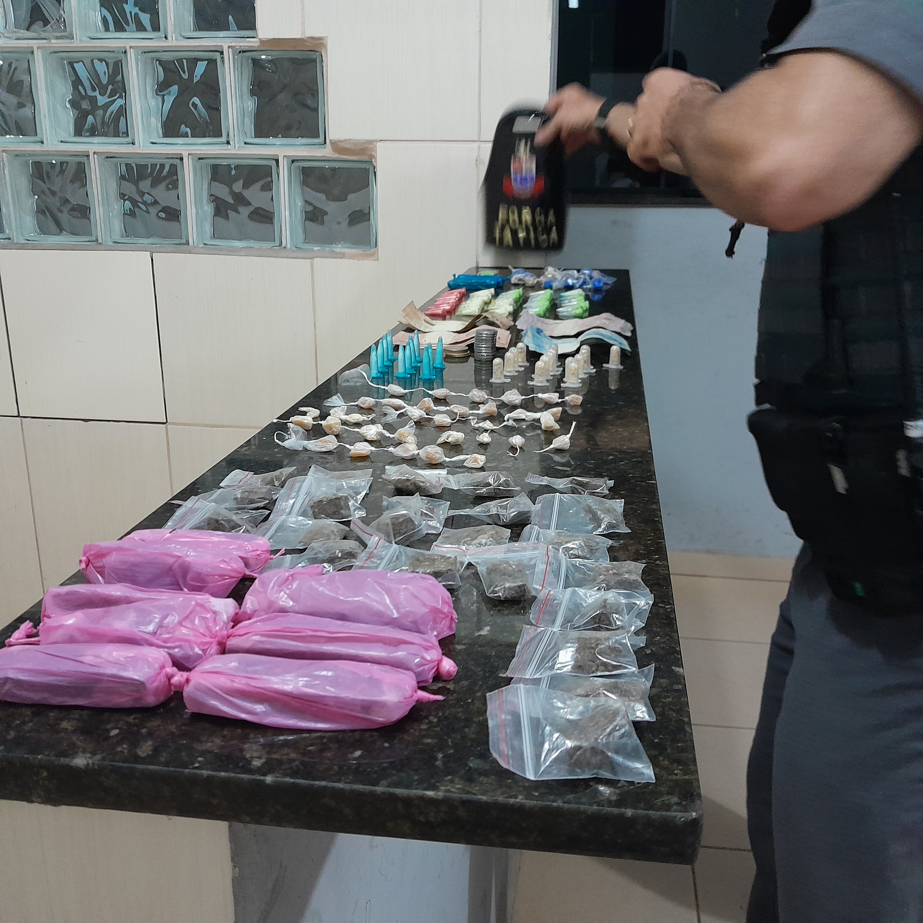 De acordo com informações, os policiais, sargento Caon, sargento Parente, cabo Vinícius e soldado Stivanelo estavam em patrulhamento, quando avistaram o adolescente. Este teria saído correndo, mas acabou sendo detido. Com ele foram localizadas drogas e dinheiro. Os policiais encontraram o restante das drogas escondido em uma árvore. O jovem, que segundo informações, é suspeito de ter praticado um roubo a residência, foi encaminhado para a Central de Polícia Judiciária, onde ficou à disposição da família.
