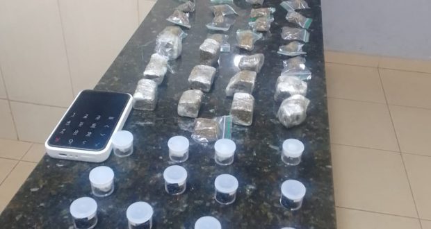 De acordo com informação, os policiais, sargento Parente, cabo Moda e soldado Stivanelo estavam em patrulhamento preventivo, quando abordaram o menor e com ele foram localizados 41 porções de maconha, 56 pinos de cocaína, 11 tubos de Skank e 08 tubos de haxixe. O menor foi encaminhado para a Central de Polícia Judiciária, onde ficou à disposição da família.