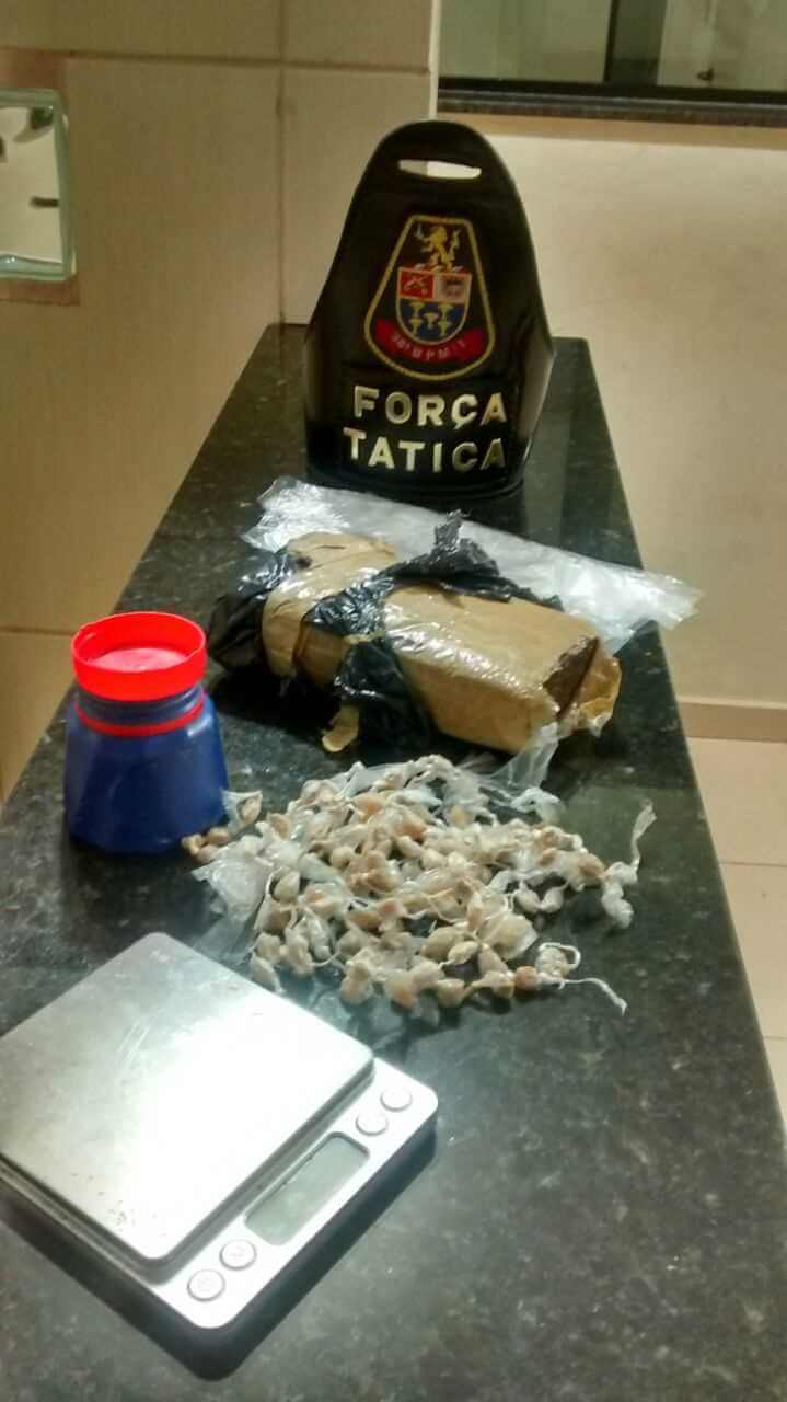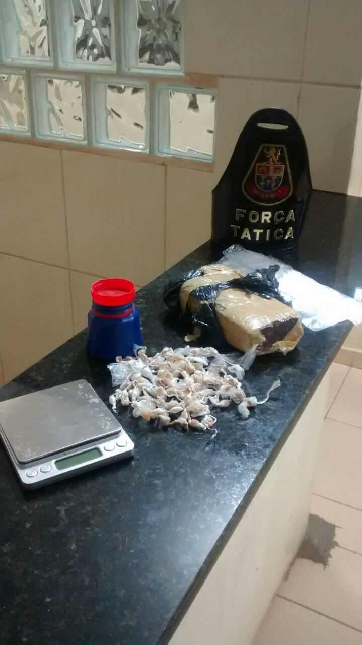 Policiais militares da Força Tática detiveram um indivíduo de 31 anos e apreenderam drogas e objetos relacionados ao tráfico nesta noite de quarta-feira, 06-06-2018, na Av Hercules Sachi, bairro Monte Carlo, São Carlos-SP.