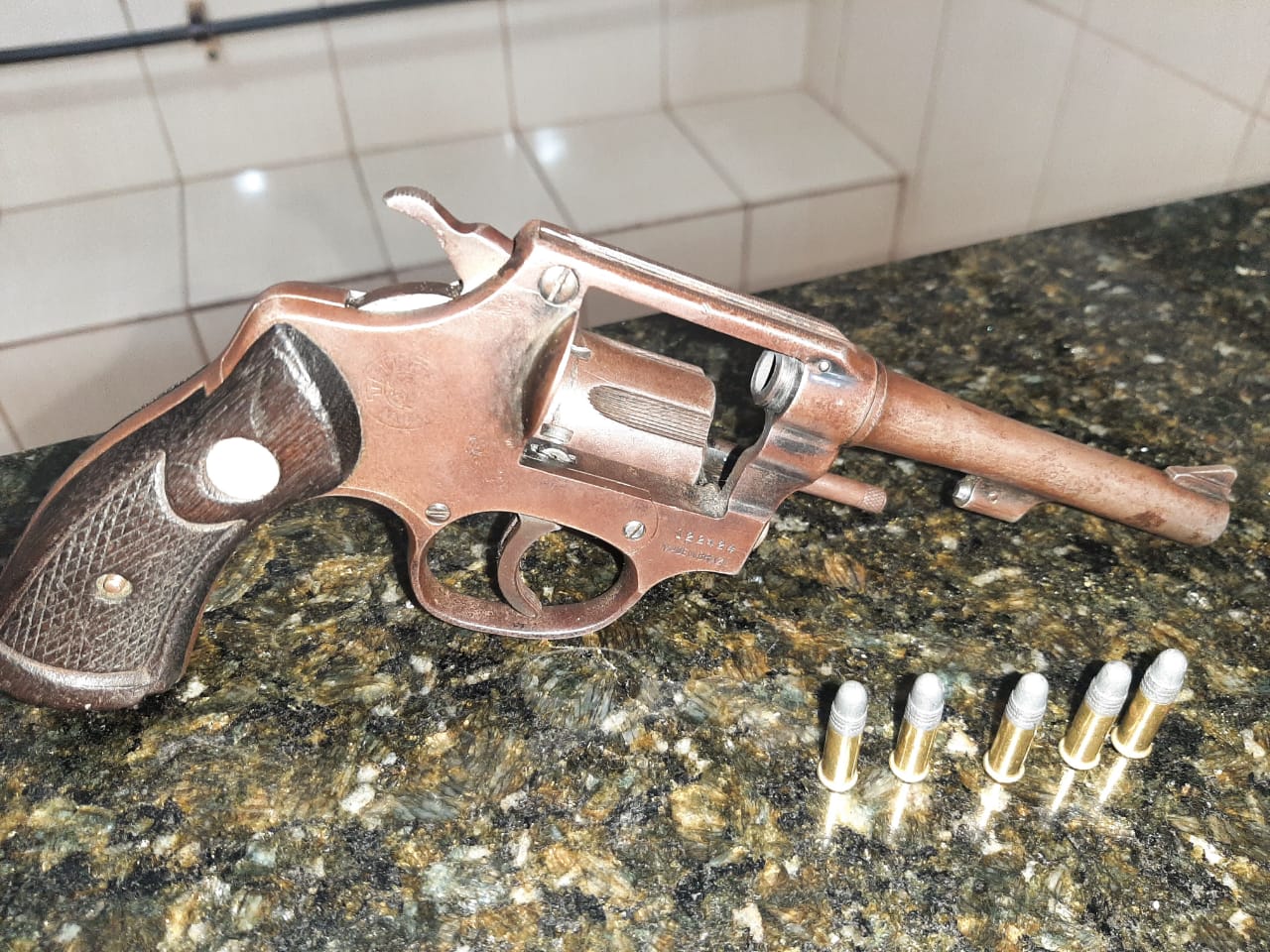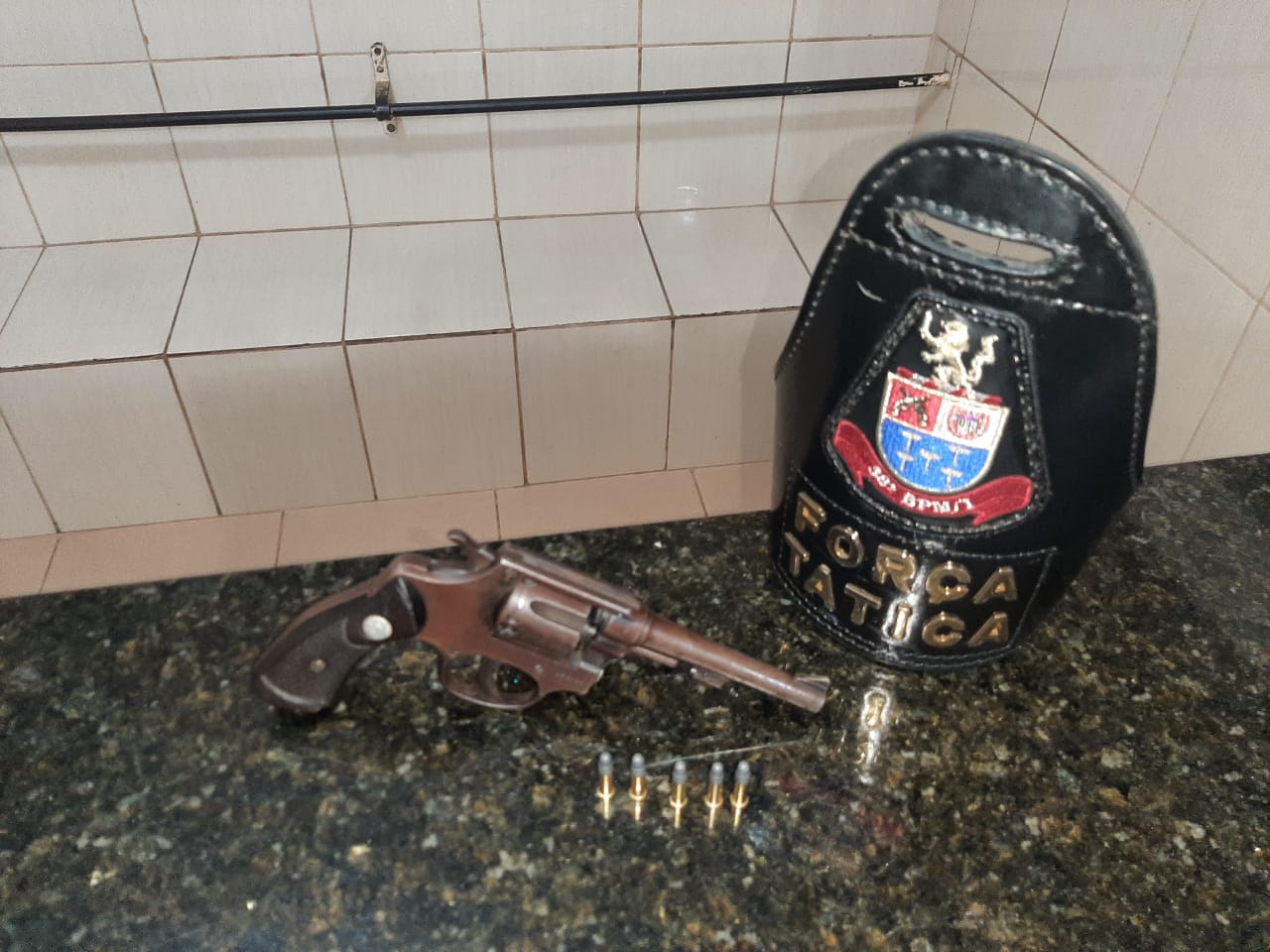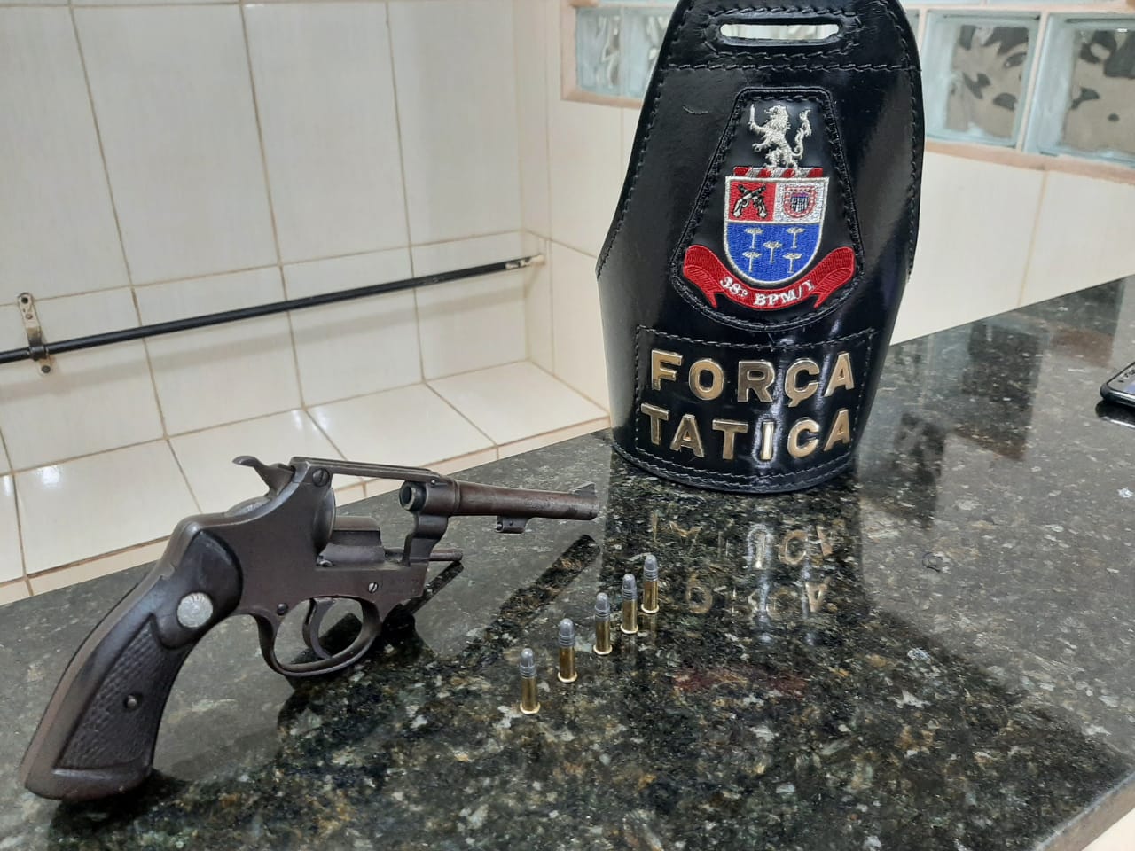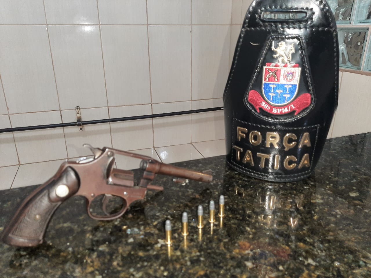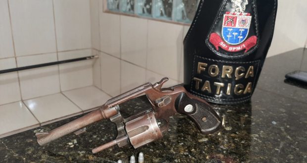 Segundo informações, durante patrulhamento de Força Tática, a equipe avistou um veículo Citroen C3 com dois indivíduos. Foi realizado abordagem nada de ilícito foi encontrado com a dupla, porém durante busca veicular foi localizado na porta do motorista um revólver calibre 22 com 5 munições intactas. T. A. C, foi encaminhado ao Plantão Policial, ficando à disposição da justiça.