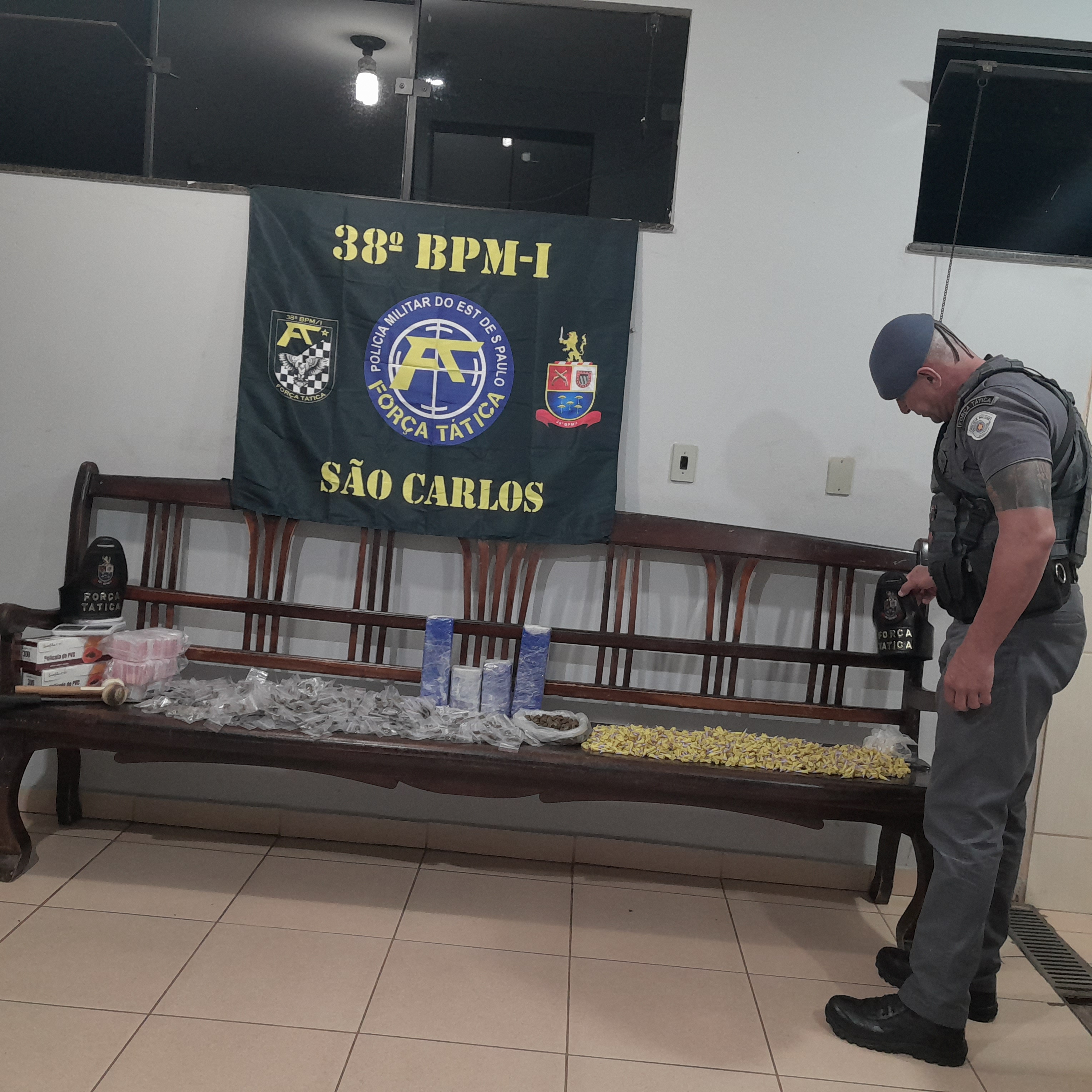 Nesta noite de quarta-feira, 24/04/2024, policiais da Força Tática detiveram um homem de 31 anos por tráfico de drogas na Rua Munir Rachid, bairro Cidade Aracy, São Carlos-SP.