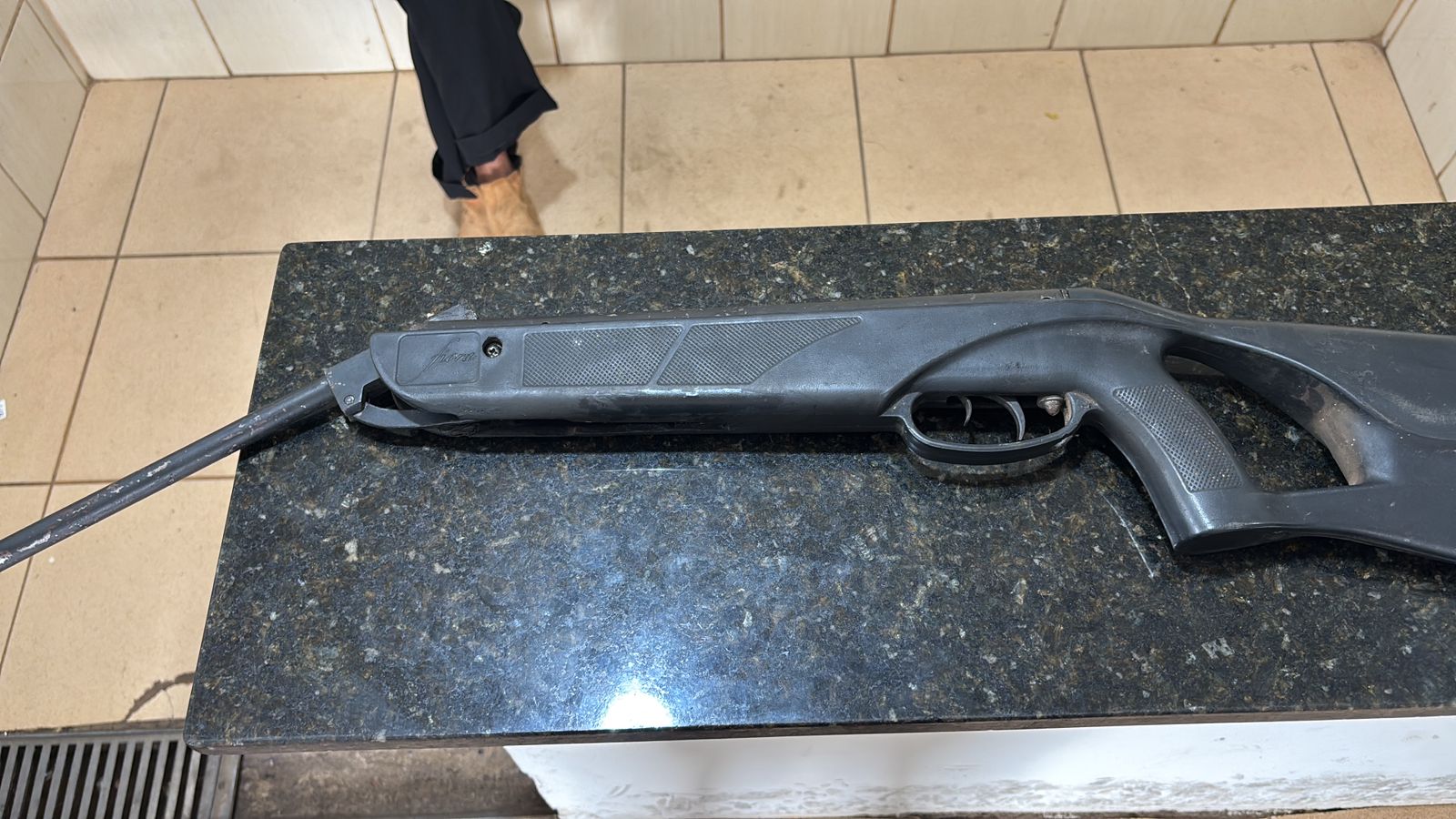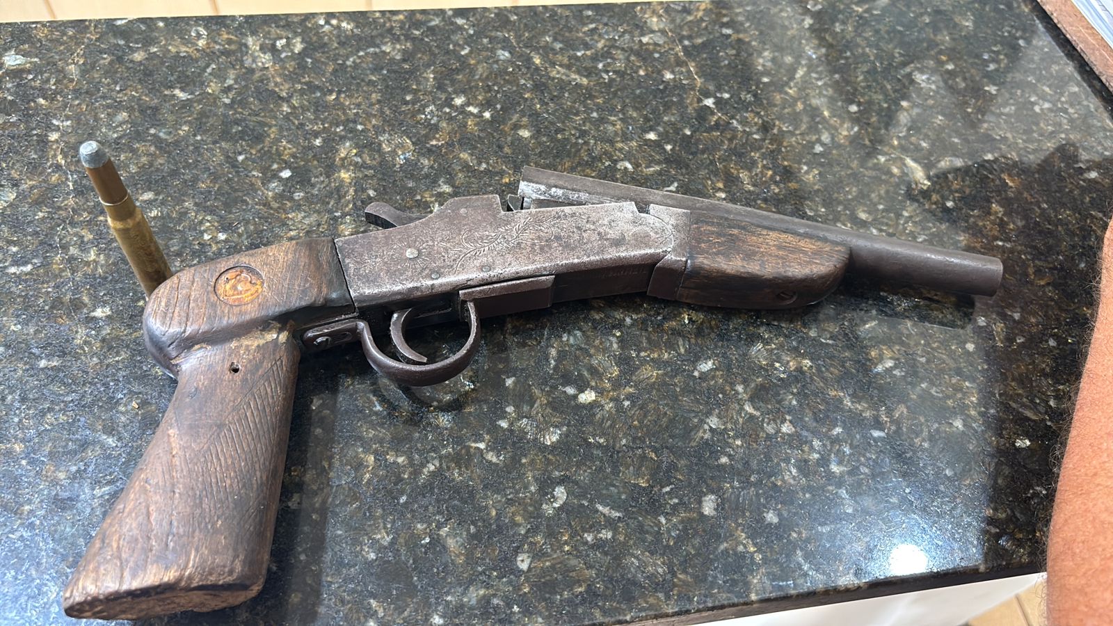 Com a anuência do conduzido, a equipe adentrou o imóvel e localizou duas armas de fogo, sendo: