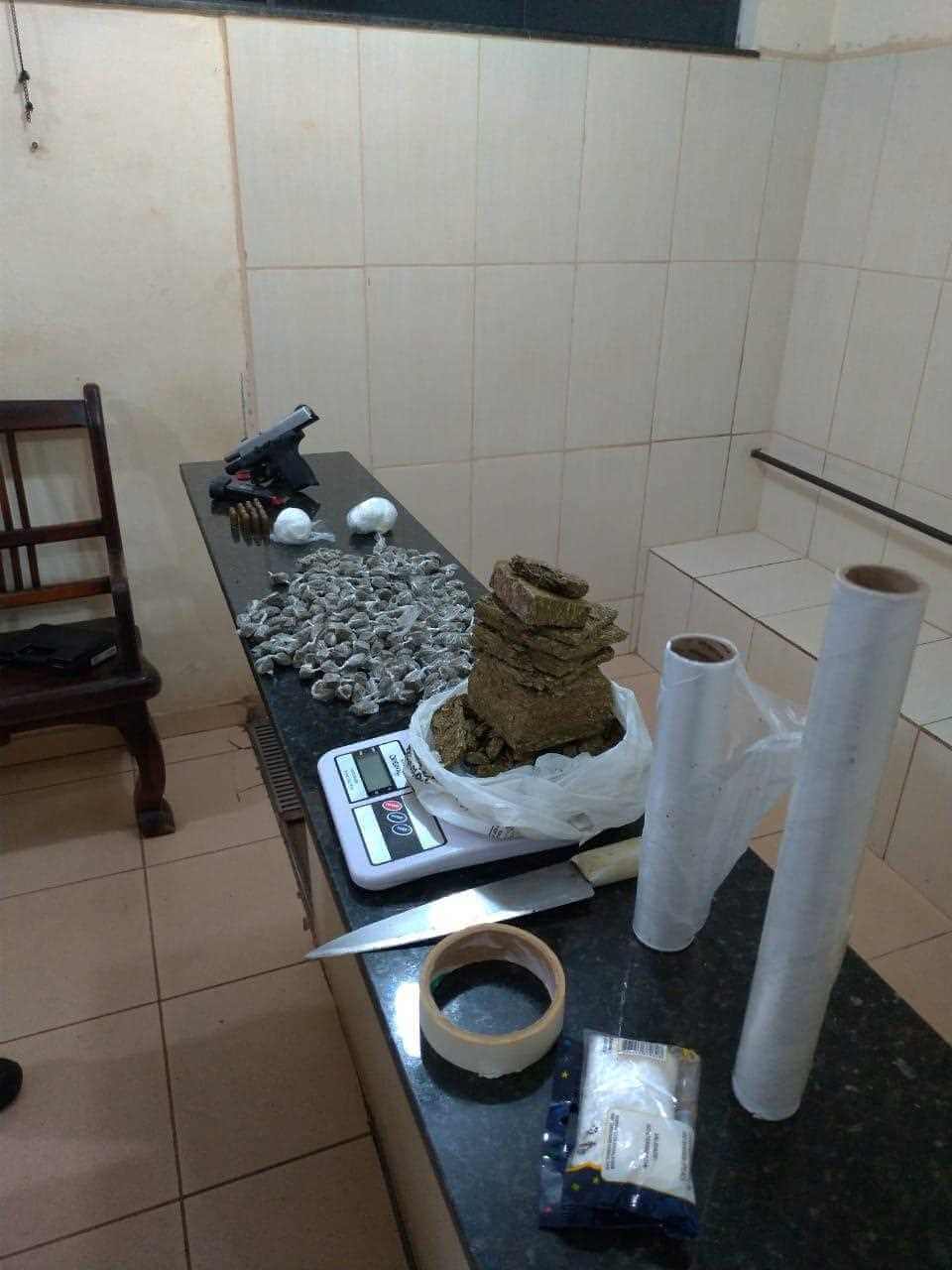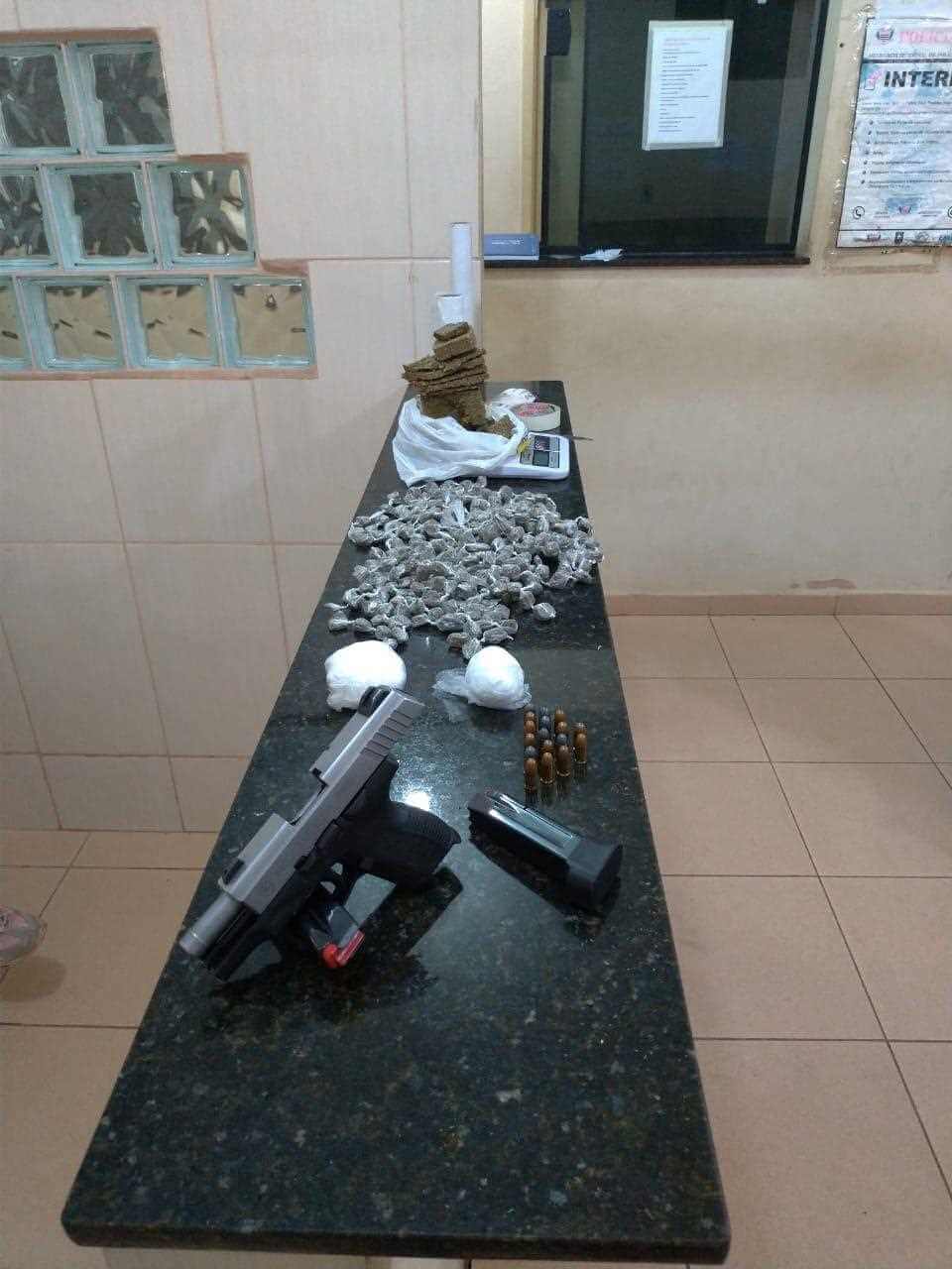 Segundo informações, a Força Tática foi averiguar uma denúncia e localizou drogas e uma arma de fogo. O sujeito foi conduzido ao Plantao Policial, onde esta sendo apresentado ao delegado.