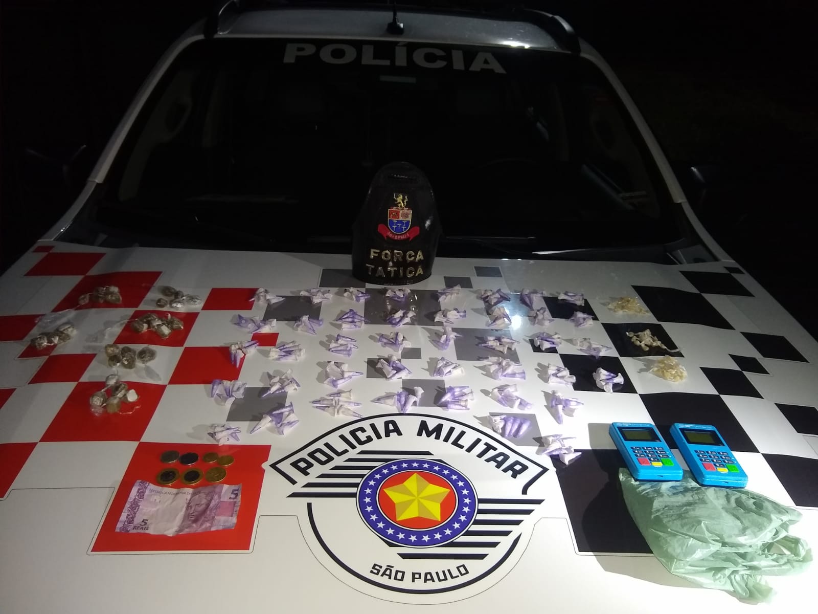 Em entrevista, o sujeito confessou que estaria no local para comercializar drogas. Já o ocupante do carro confessou ser usuário de drogas e que estaria no local para comprar maconha.