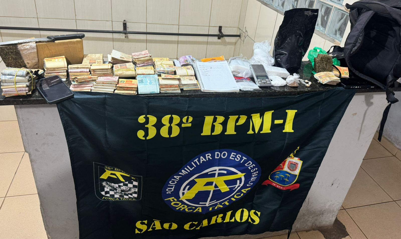 De acordo com informações, o sargento Strozze, o sargento Alcântara e o cabo Prado estavam em patrulhamento preventivo, quando avistaram um veículo Peugeot/206, o qual estava estacionado e no interior um casal. Os policiais pararam e realizaram a abordagem. Com R. G. C, de 23 anos, foram localizados R$ 1.000,00. No carro foi localizada uma mochila e no interior foram encontradas porções de crack, maconha e a quantia de R$ 900,00. Questionados sobre seus endereços, R. G. C, indicou onde morava e lá a equipe do Tático 10, juntamente com a equipe do Tático Comando, localizaram um tijolo de maconha, apetrechos para separar e embalar drogas, bem como a quantia de R$ 19.068,00 em notas diversas. O casal foi encaminhado para a Central de Polícia Judiciária, onde R. G. C, foi autuado em flagrante por tráfico de drogas e recolhido ao Centro de Triagem de São Carlos. A mulher foi liberada.