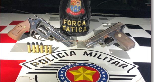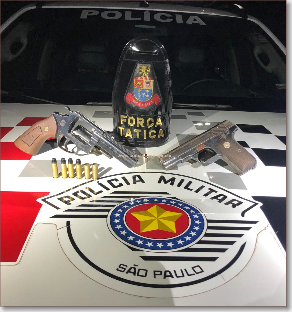 Policiais militares da Força Tática detiveram um jovem de 18 anos na noite de sábado, 31-07-2021 e apreenderam duas armas de fogo, as quais estariam no guarda-roupa na Rua Evelyn Marchetti, bairro Eduardo Abdelnur, São Carlos-SP.