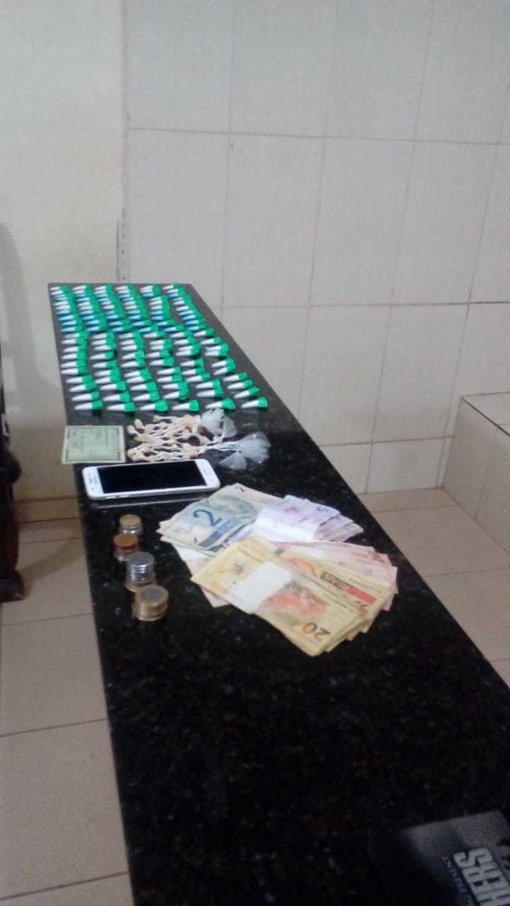 Segundo informações, os policiais da Força Tática estavam em patrulhamento pelo Jd. Gonzaga quando abordaram G.T. A, 21 anos, defronte ao número 05 da rua Pernambuco, onde em vistoria a sua residência foram  encontrados  120 pinos  de cocaína, 65 pedras de crack, R$ 502,00. O jovem foi encaminhado ao Plantão Policial, autuado em flagrante por tráfico de drogas e recolhidos ao Centro de Triagem de São Carlos.