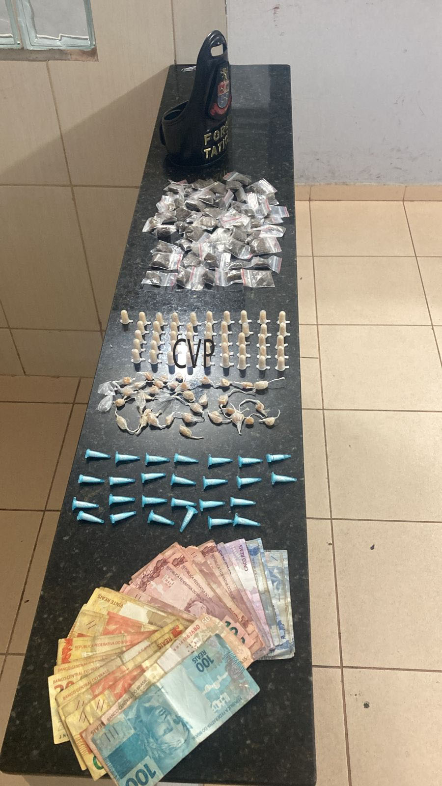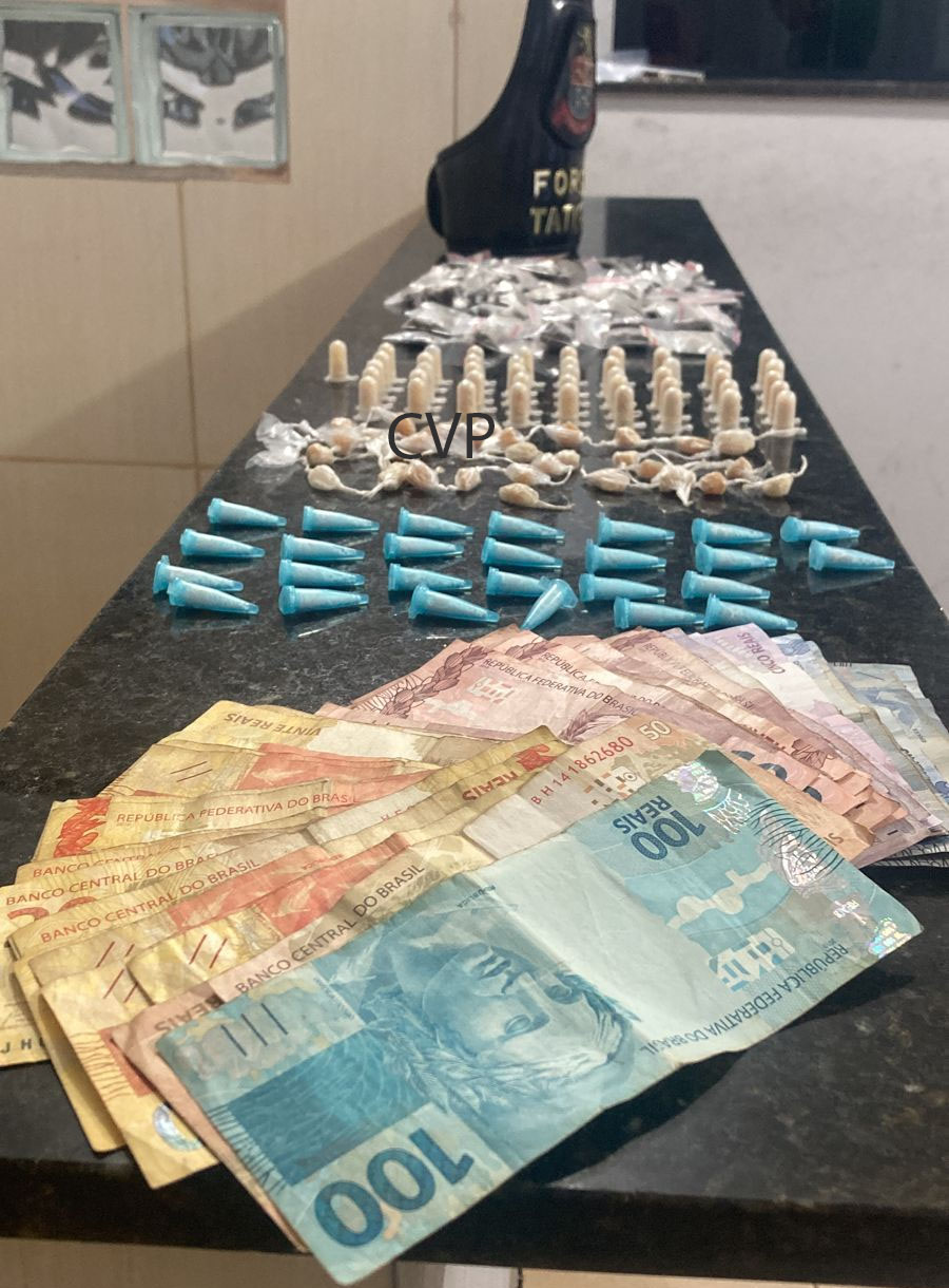 De acordo com informações, por volta das 17h00, o sargento Strozze, cabos Prado e Tiago estavam em patrulhamento preventivo pelo citado bairro, momento que avistaram L. A. F, de 18 anos, o qual saiu correndo. Os policiais conseguiram realizar a abordagem e com ele foi localizada uma sacola contendo 57 porções de maconha, 80 pedras de crack, 26 pinos de cocaína e R$ 912,00. Ao ser indagado, o abordado confessou que estaria vendendo drogas, tendo em vista estar passando por dificuldade financeira. O detido recebeu voz de prisão e foi encaminhado para a Central de Polícia Judiciária de São Carlos, onde foi autuado em flagrante pelo delegado, Dr. Maurício Antônio Dotta e Silva e recolhido ao Centro de Triagem de São Carlos.