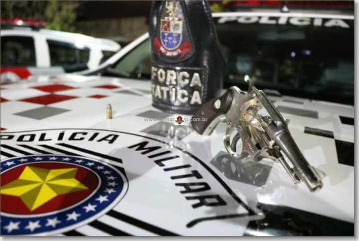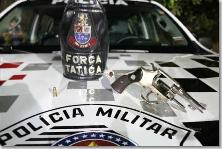 De acordo com informações, eram por volta das 19:00  quando a PM foi acionada no local para averiguar uma briga de casa. O denunciante informou através do 190 que o casal estava em poder de uma arma de fogo.  As equipes da Força Tática abordaram o casal e segundo consta, com a jovem de 18 anos  foi localizada a arma de fogo. O casal foi conduzido ao Plantão Policial,  L.L.S, foi  autuada em flagrante e o sujeito de 19 anos liberado.