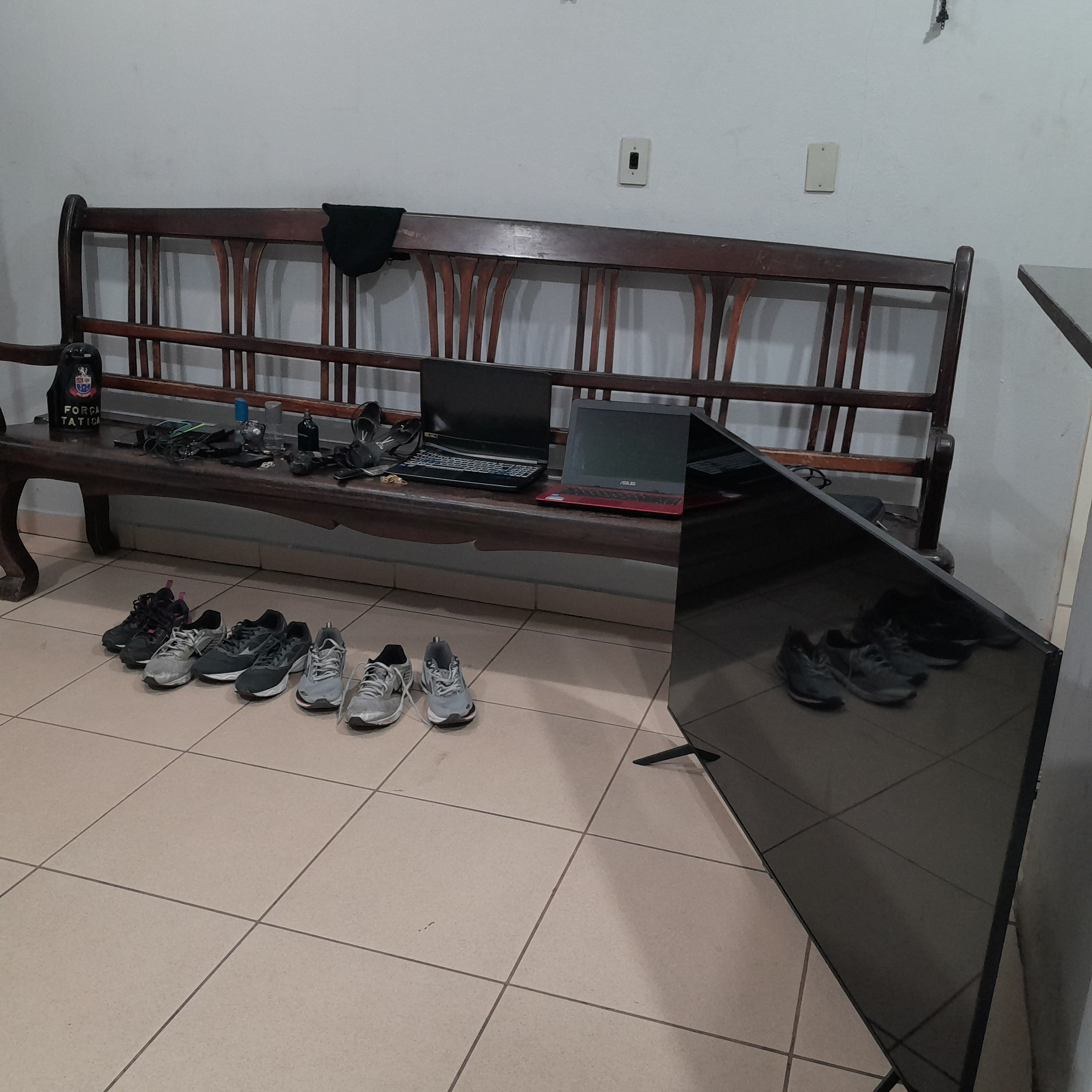 Segundo informações, marginais renderam as vítimas e mediante violência roubaram notebook, celulares, dinheiro, tv, entre outros e fugiram levando também um veículo Corolla, um Onix e uma moto. As vítimas ficaram trancadas em cômodos da casa. A PM foi comunicada do roubo e viaturas passaram a patrulhar com vistas aos criminosos. Os suspeitos foram detidos no CDHU da Vila Isabel, onde foram encontrados alguns objetos roubados. Os detidos donfessaram que haviam escondido a moto e o Corolla no bairro Antenor Garcia. Já o Onix até a publicação desta matéria, não havia sido localizado. Os detidos, sendo um de 18 anos, um de 19 e três de 17, todos com passagens pela Fundação Casa, foram encaminhados para a Central de Polícia Judiciária, mas até a divulgação da matéria, a situação deles não havia sido definida. A PM apreendeu também uma réplica de pistola e uma faca que eles usaram no roubo.