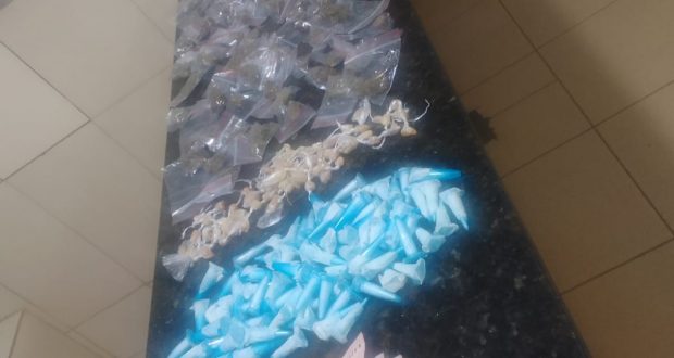 De acordo com informações, o sargento Parente, o cabo Moda e o soldado Ederson estavam em patrulhamento, quando avistaram M. H.O.T,de 23 anos. Este ao perceber a presença policial, jogou uma sacola ao solo. Ele foi abordado e nada de ilícito foi encontrado em seu poder, porém na sacola dispensada por ele, foram localizados 06 unidades de maconha e 04 pinos de cocaína. O sujeito confessou que havia mais drogas escondidas nas proximidades. No total foram apreendidos 147 porções de maconha, 86 pinos de cocaína, 73 pedras de crack, R$ 54,00 e um aparelho celular. O abordado, o qual segundo a PM, já tem passagem por tráfico de drogas e receptação, recebeu voz de prisão e foi conduzido para a Central de Polícia Judiciária. A ocorrência foi apresentada ao delegado, Dr. Adriano Callsen Alexandrino. Após elaboração do flagrante, o sujeito foi recolhido ao Centro de Triagem de São Carlos.