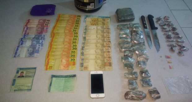 Na casa do avô os policiais encontraram no quarto do abordado mais 19 tabletes e 21 porções de maconha, além de 18 pontos de droga sintética, material para embalo, facas com resquícios de maconha e R$ 965 reais.