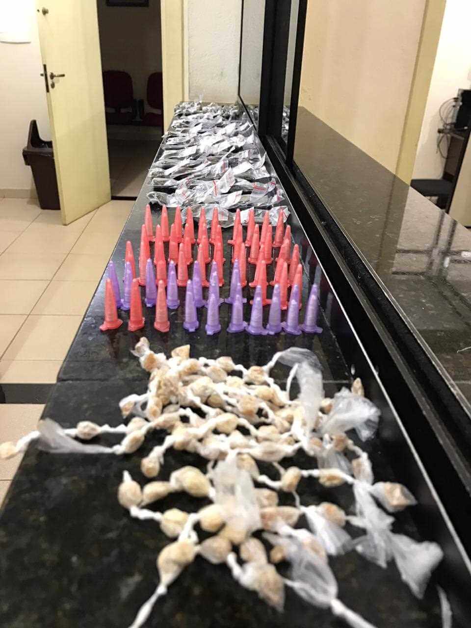 No local foi encontrado 94 pedras de crack, 50 pinos de cocaína e 100 invólucros de maconha.