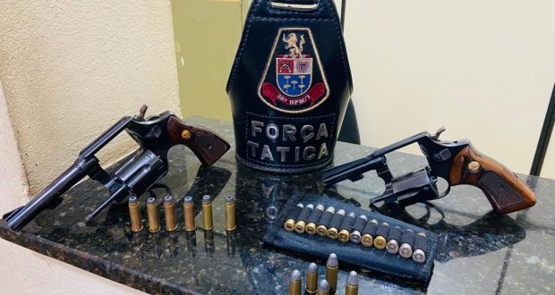 Segundo informações, equipes de Força Tática em patrulhamento abordaram vários indivíduos defronte a um estabelecimento comercial. Durante a busca pessoal foram localizadas duas armas de fogo municiadas. Posteriormente realizado vistoria no interior da residência de um dos indivíduos na cidade de São Carlos, sendo localizado mais 12 munições intactas calibre 38. Dados apresentados no Plantão Policial onde os dois indiciados foram recolhidos ao Centro de Triagem.