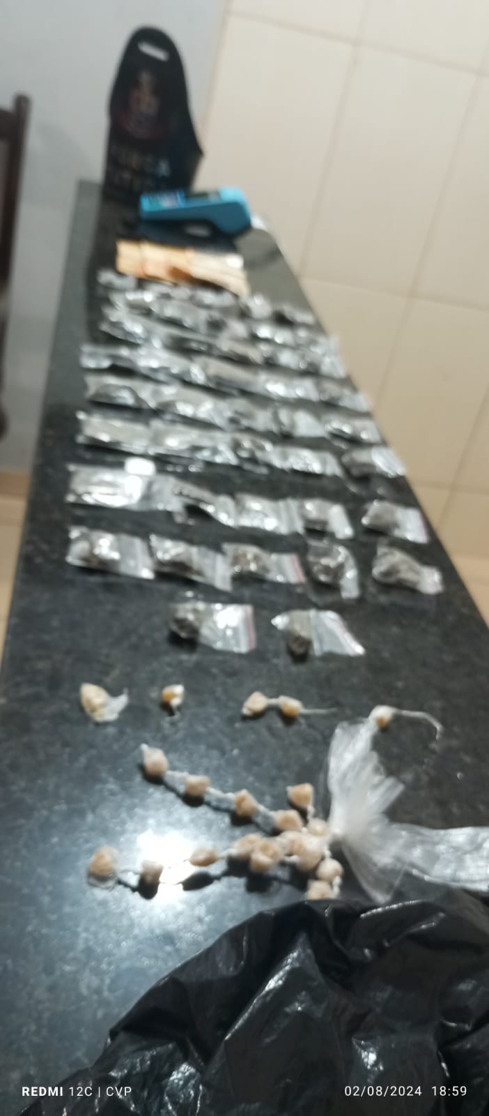 Um sujeito de 23 anos, foi detido pela Força Tática nesta noite de sexta-feira,  02/08/2024, na Rua Benedito Barreto, bairro Jd. Cruzado,  Ibaté-SP.