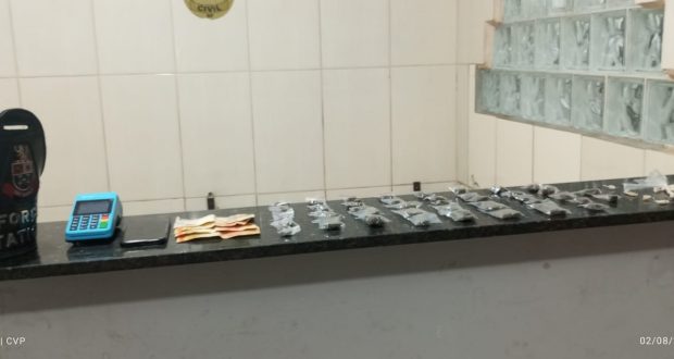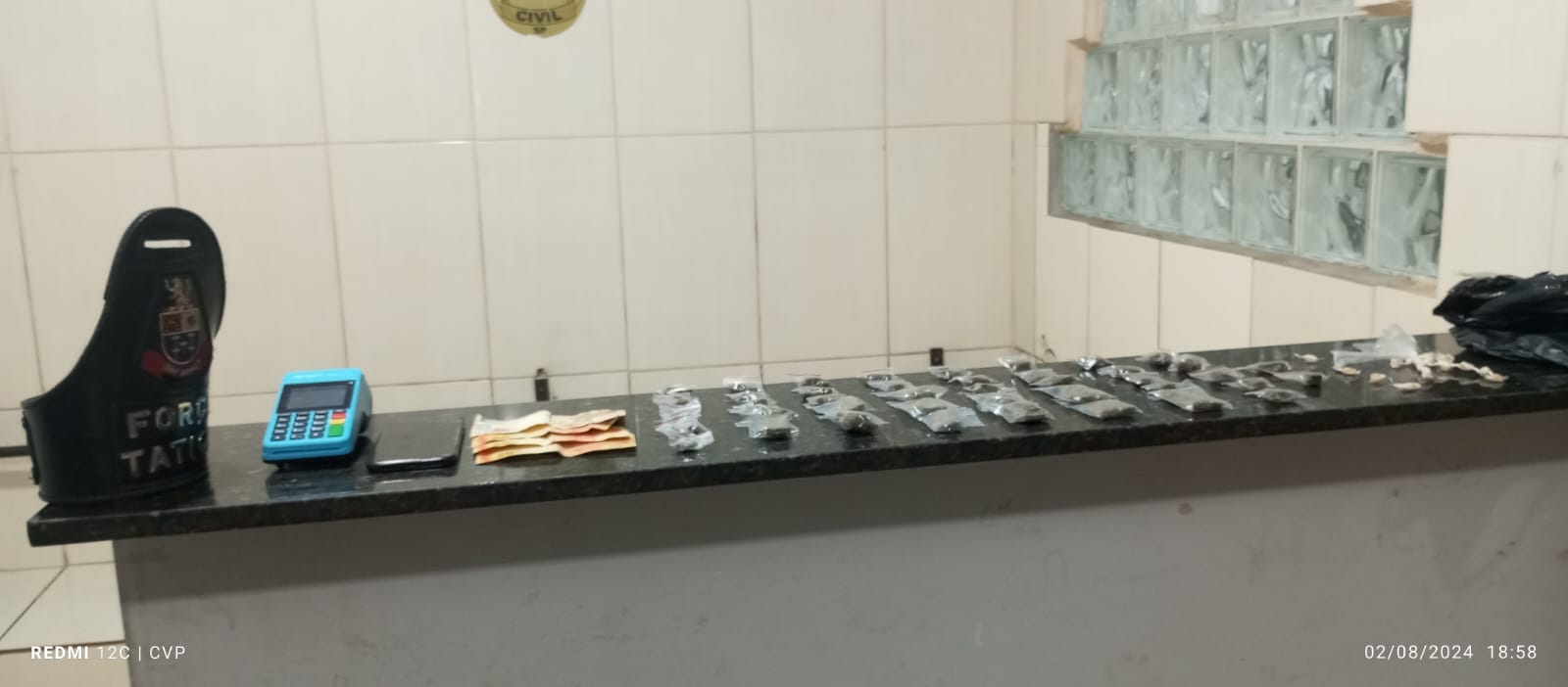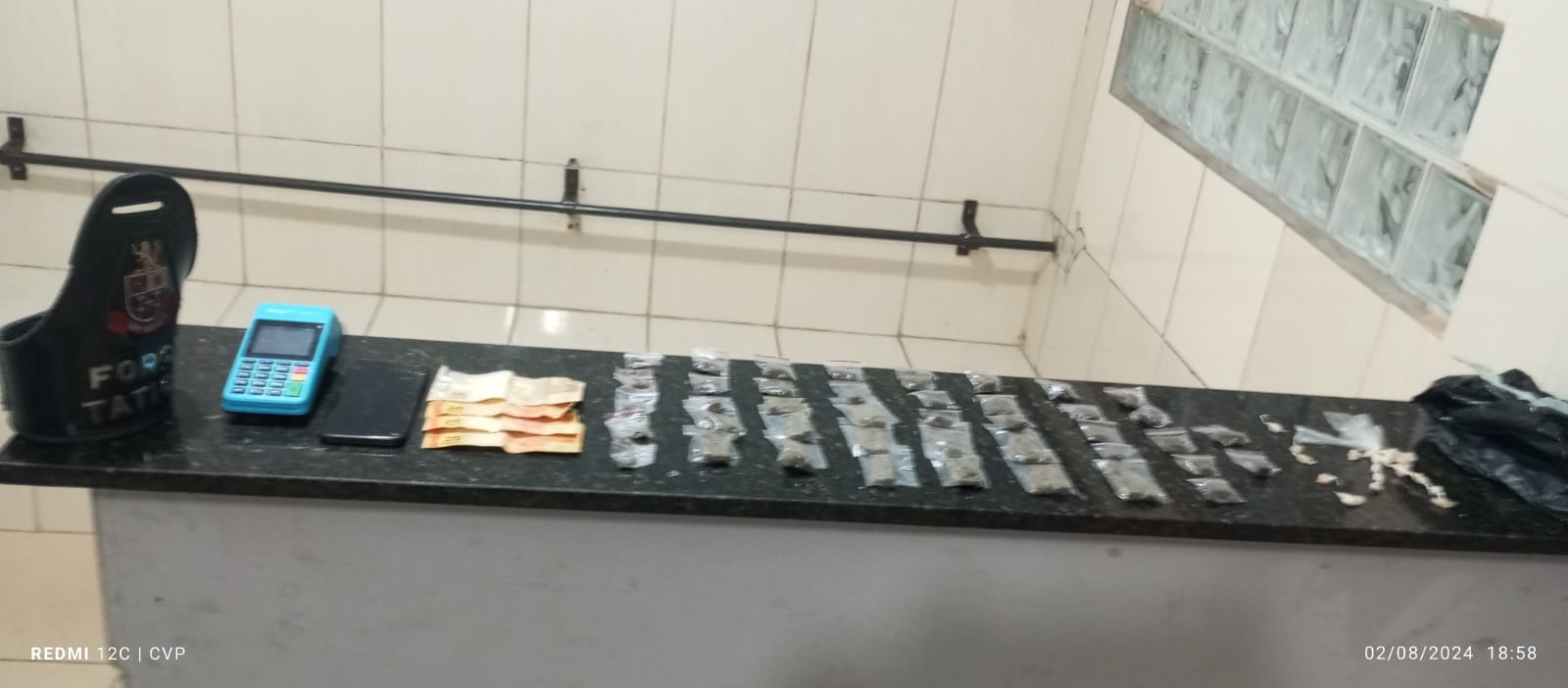 De acordo com informações,  o sargento Alcântara,  o cabo Carlos e o soldado Bruno, estavam em patrulhamento por Ibaté,  quando visualizaram M.S. J. de  23 anos, na via pública.  Este ao ver a barca da Força Tática,   dispensou uma  sacola ao solo.  Imediatamente os policiais desembarcaram e detiveram o meliante. Na sacola foram localizados 20 pedras de crack, 42  porções de maconha, uma máquina de cartão e cento e dez reais.  A ocorrência foi encaminhada para a Central de Polícia Judiciária de São Carlos,  onde foi apresentada. O detido ficou à disposição da justiça.