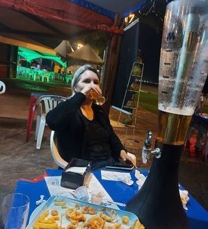 Imagem de Elize diante de uma torre de chope estava em celular apreendido após o indiciamento pela suposta apresentação de um documento falso