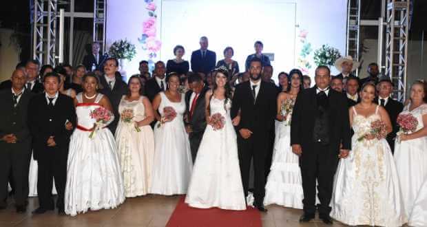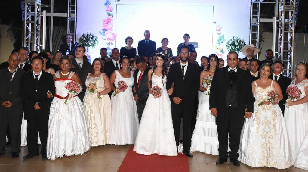 Quarenta e sete casais de São Carlos realizaram o sonho de celebrar a união numa cerimônia como manda o figurino: vestido de noiva, buque, marcha nupcial, bolo e espumante. O 6º Casamento Comunitário promovido pelo Fundo Social de Solidariedade com apoio de vários parceiros emocionou e encantou os casais.