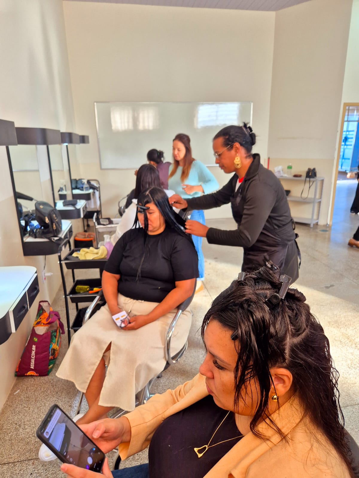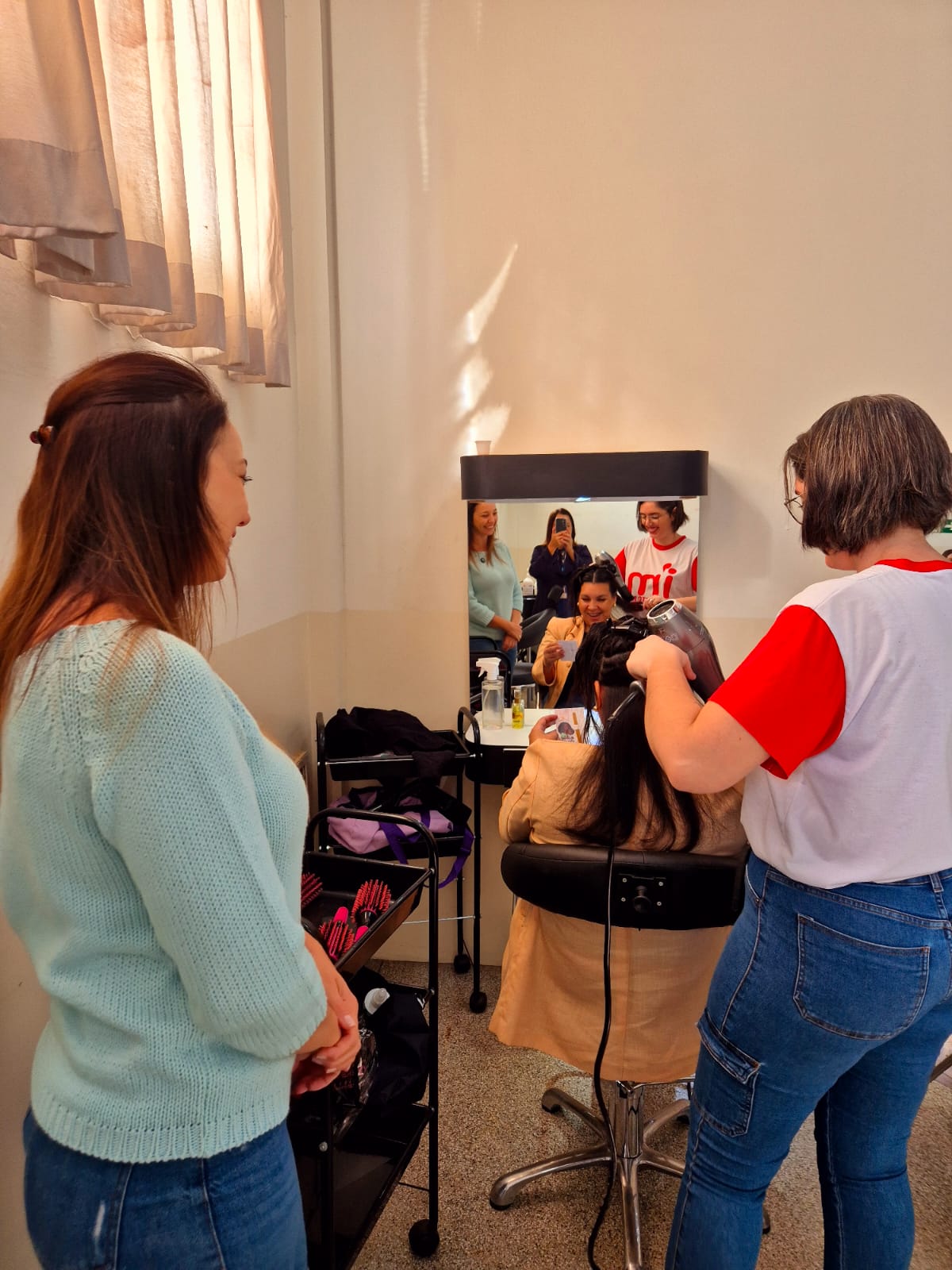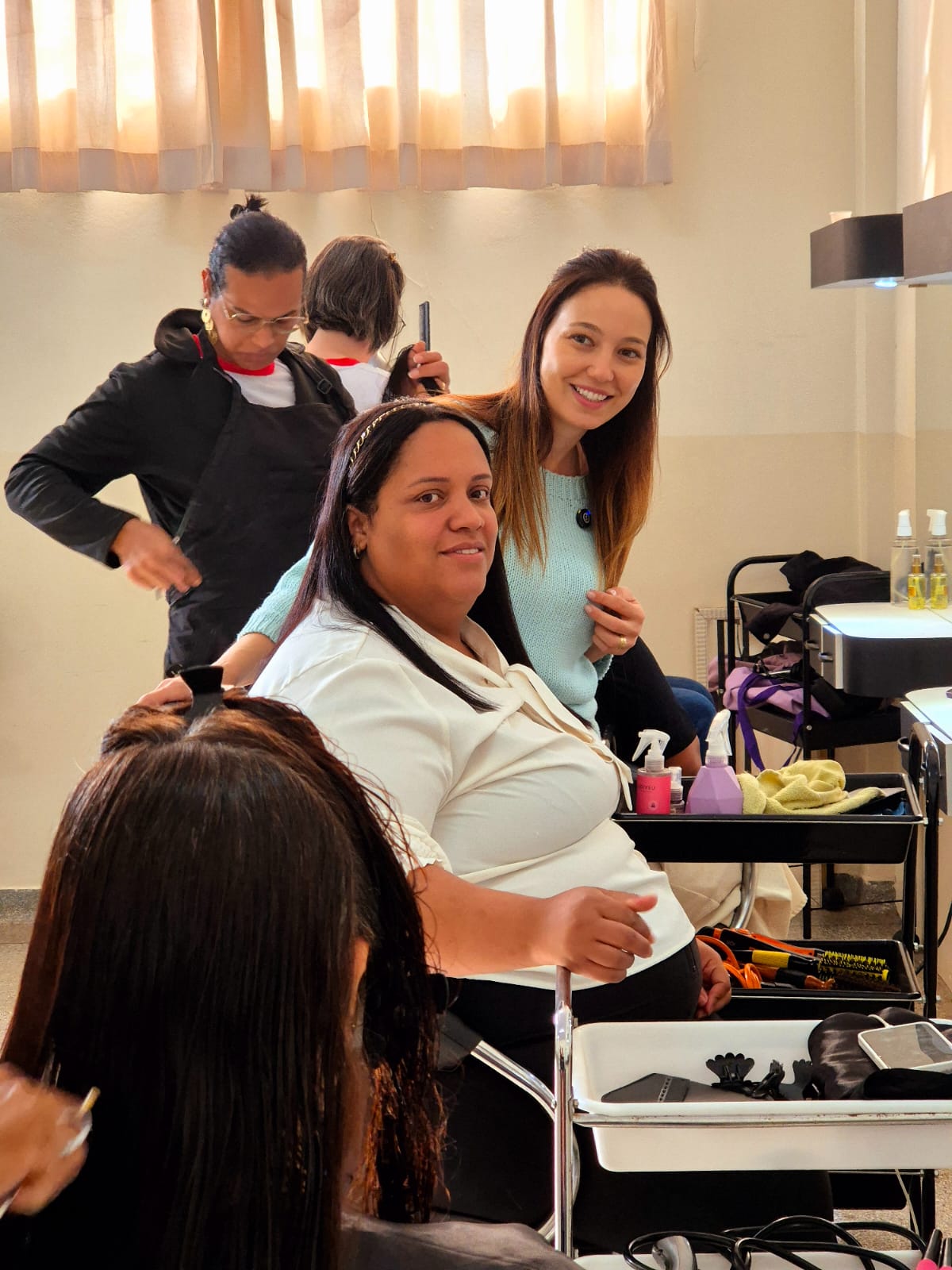A primeira-dama e presidente do Fundo Social de Solidariedade, Herica Ricci Donato e a diretora do FSS, Eucimara Jorge Pott, acompanharam o início dos trabalhos. As primeiras mães que chegaram no local optaram pelo corte de cabelo e outras somente pela escova. A maquiagem também foi realizada, saindo todo mundo com a autoestima elevada.