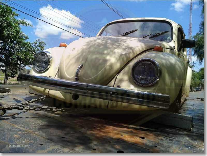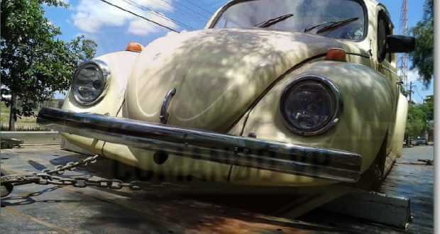 A vítima ainda nem sabia que seu Fusca havia sido furtado. Ela só ficou sabendo quando a PM foi comunicar.