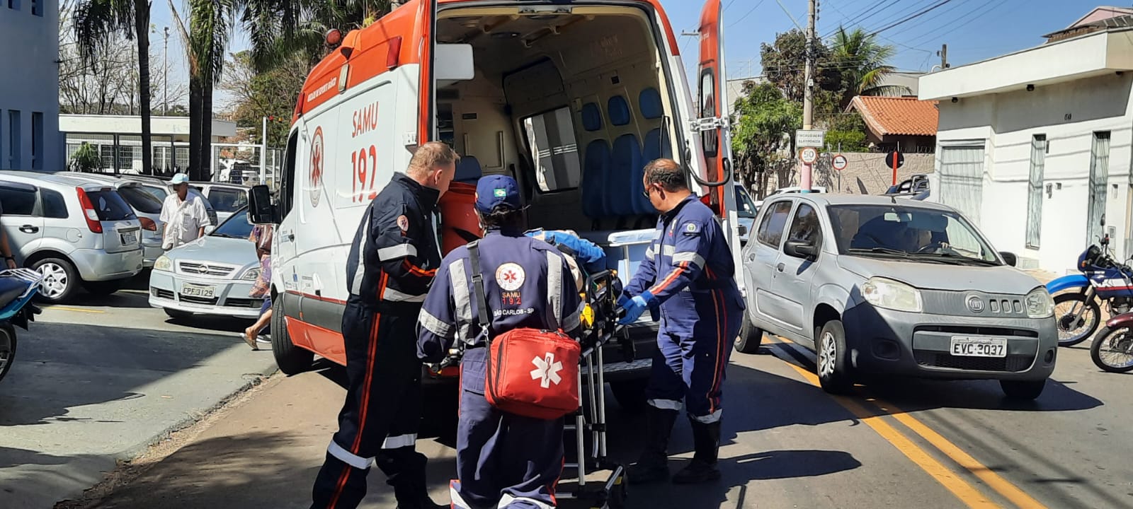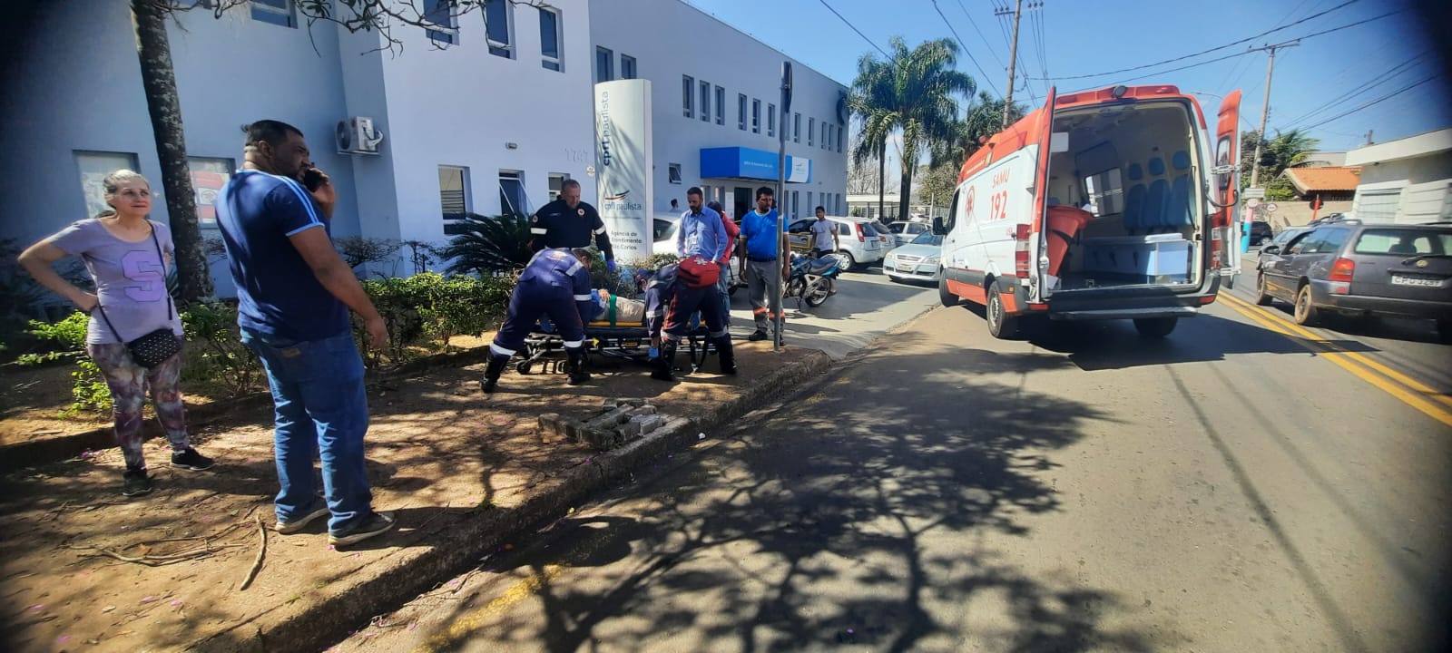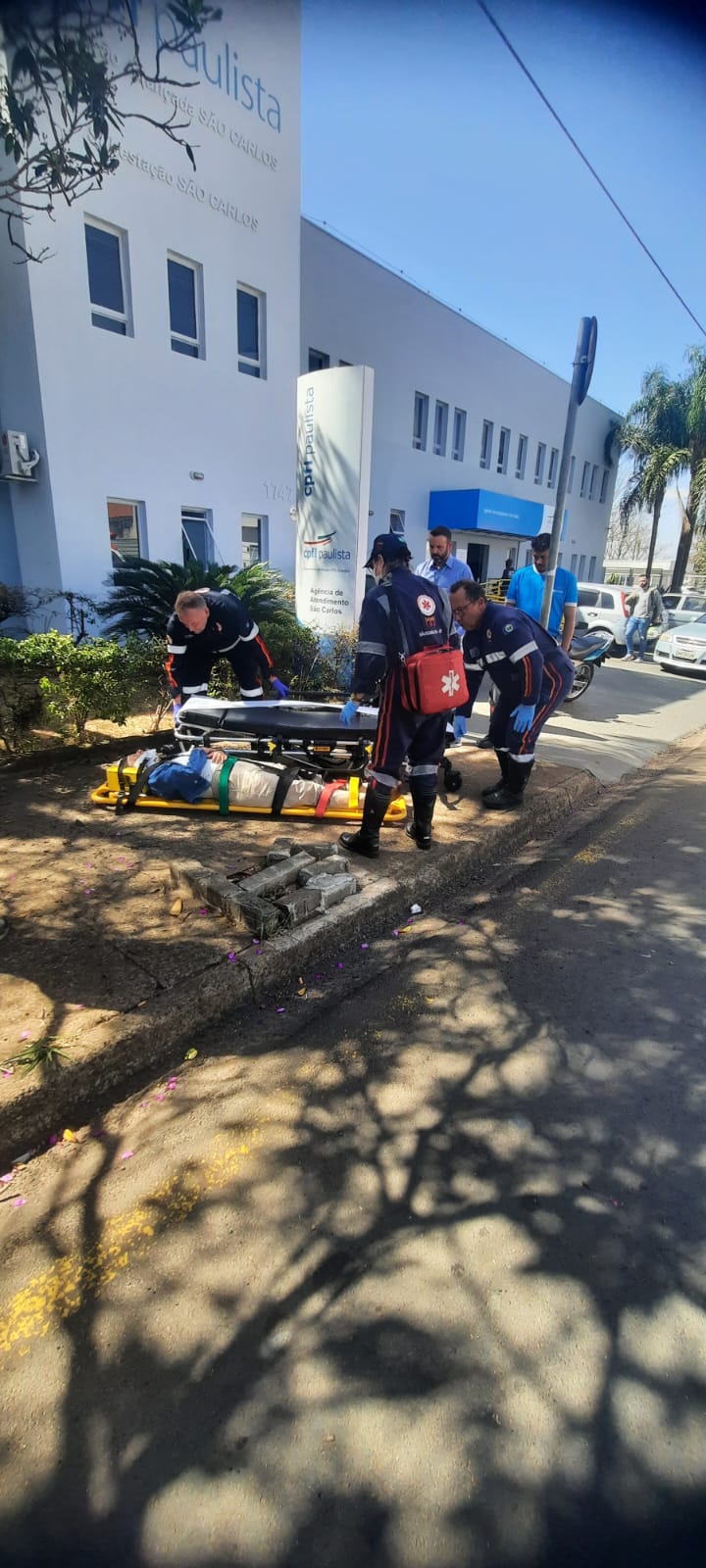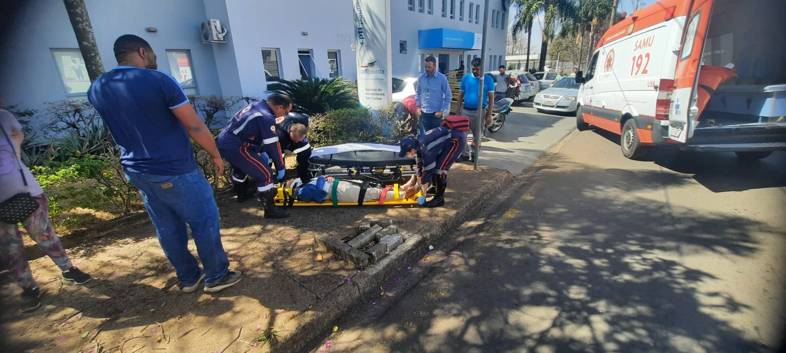 Uma senhora de 69 anos, foi socorrida pelo SAMU nesta tarde de quarta-feira, 7 de agosto de 2024, após ser atingida por um galho de árvore na Rua Raimundo Correia, bairro Castelo Branco, São Carlos-SP.