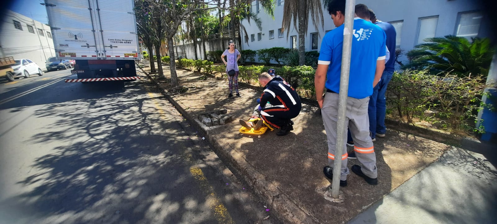 De acordo com informações, a idosa transitava a pé, o caminhão conduzido por um homem de 38 anos, o qual transitava pela Rua Raimundo Correia, no sentido bairro/Centro, derrubou o galho de uma árvore e este atingiu a idosa, a qual caiu ao solo. Uma testemunha acionou o SAMU e a vítima foi socorrida para a Santa Casa. Aparentemente sem gravidade. O motorista do caminhão parou e permaneceu no local até a chegada da PM. Todas as medidas foram tomadas.