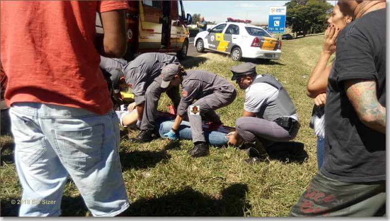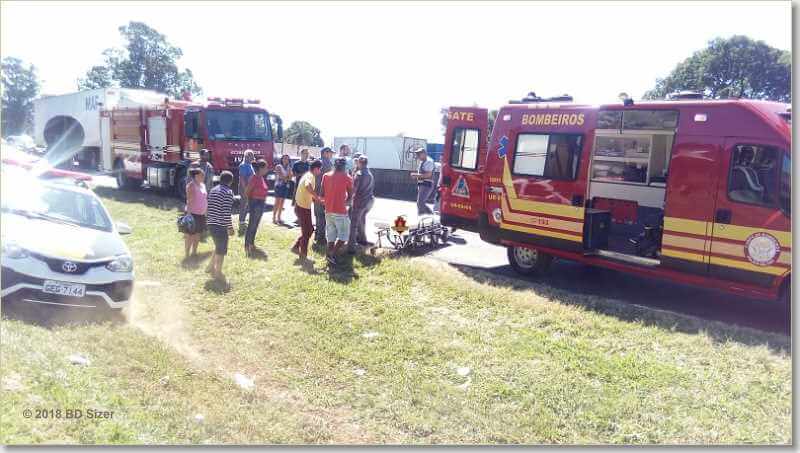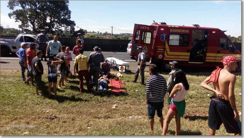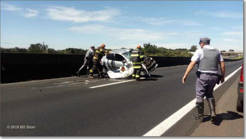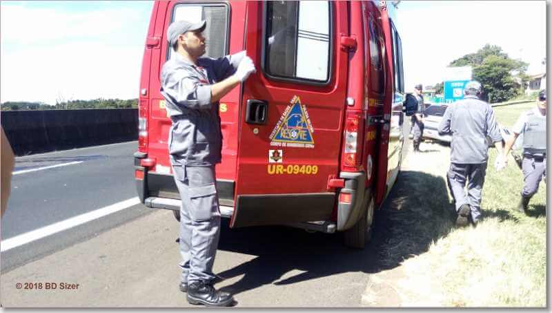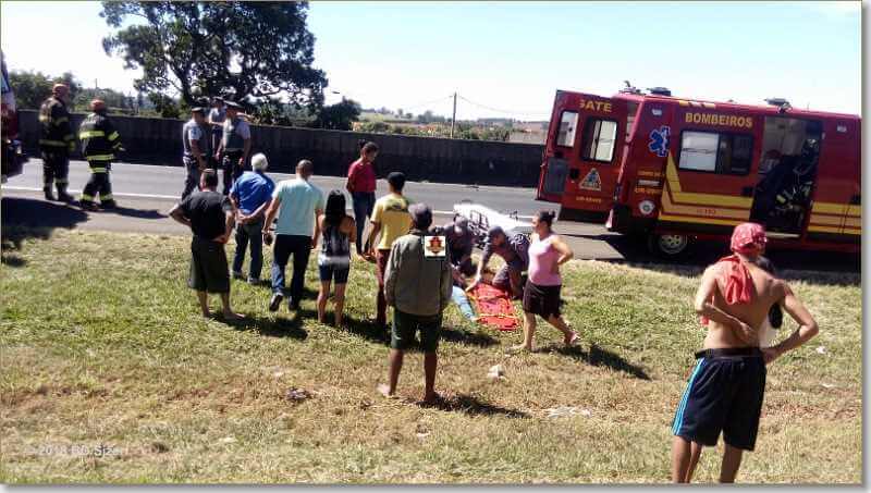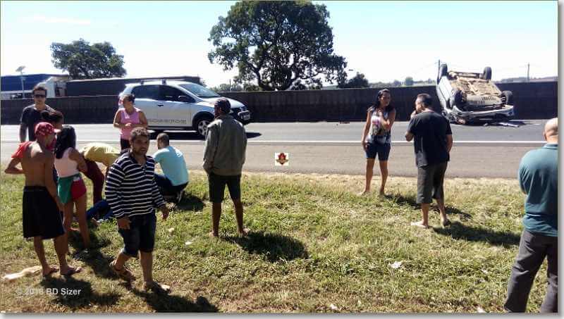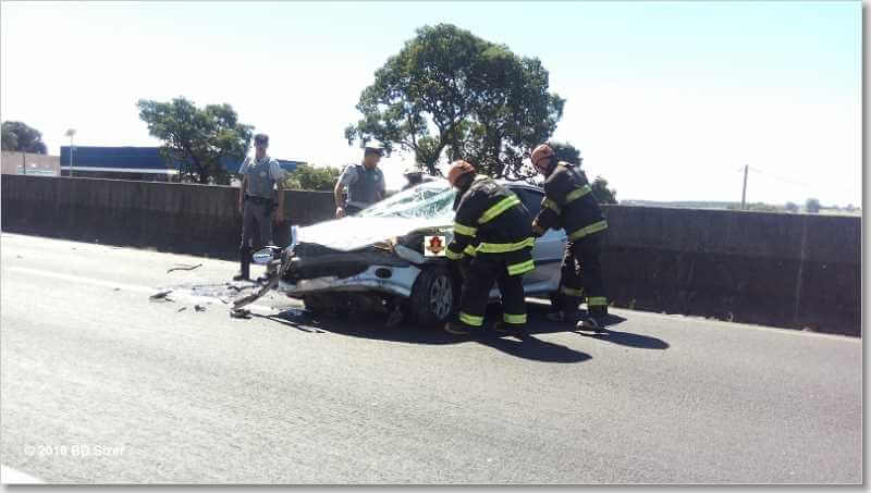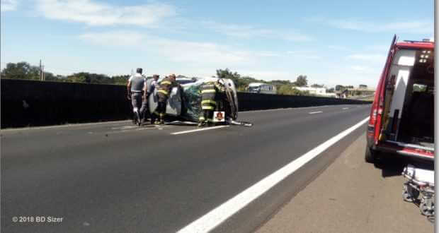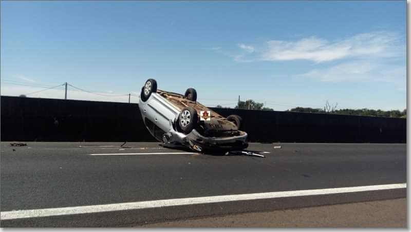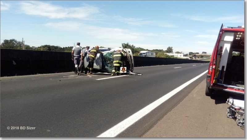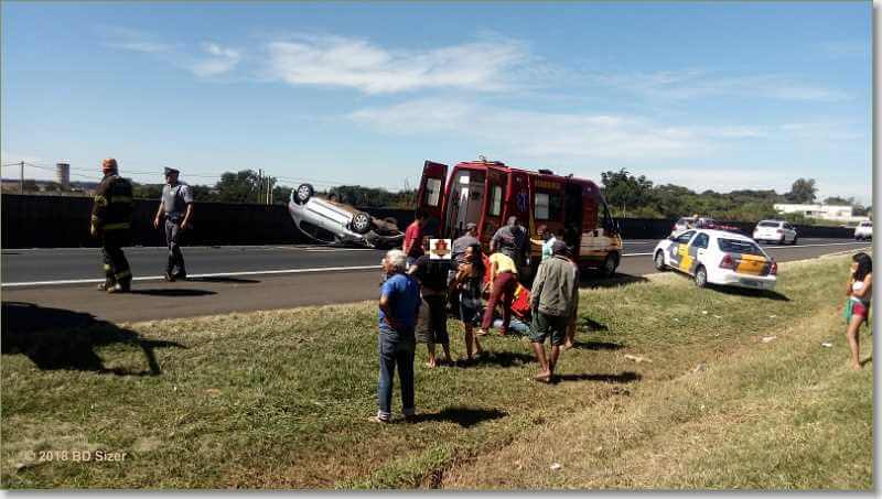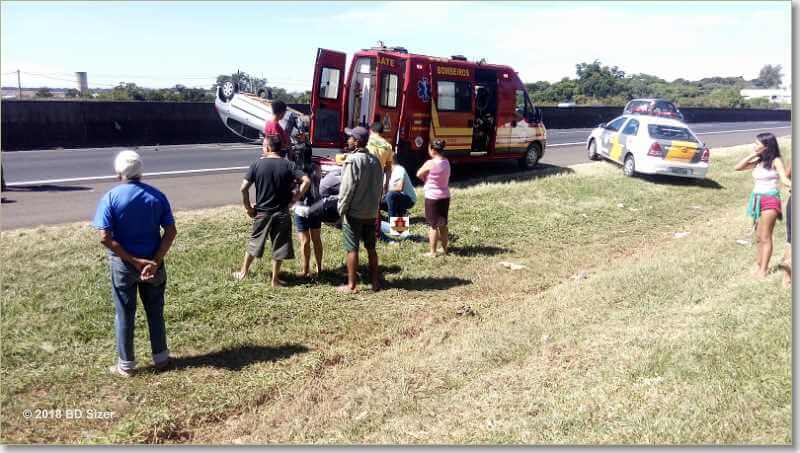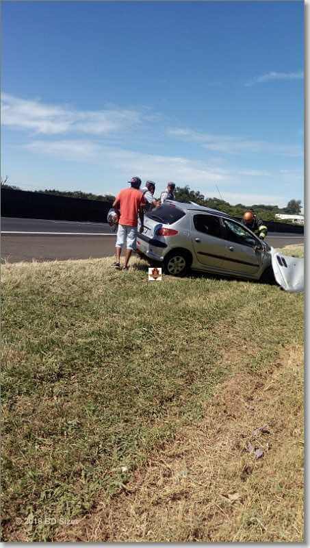 Segundo informações, R.D, de 23 anos, estava com seu Peugeot da cor prata, sentido sul, por motivos desconhecidos, perdeu o controle da direção, colidiu no muro do canteiro central e capotou. Populares que passavam pelo local acionaram o resgate e também a Polícia Militar Rodoviária. A vítima estava sozinha no carro e foi encaminhada à Santa Casa. Ela estava com algumas escoriações e muito agitada.