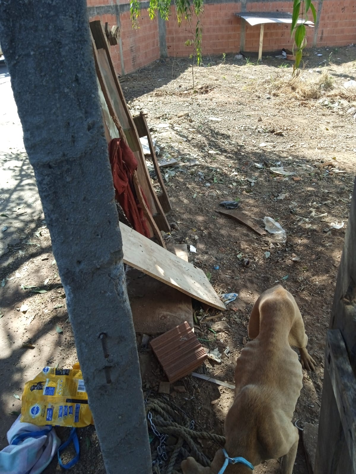 A fêmea apresentava sofrer maus tratos por estar muito magra, além do local ser totalmente insalubre.