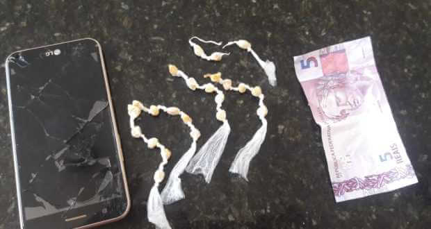 O jovem de 15 anos foi abordado e em sua posse  foi localizado um celular impedido pela secretaria de segurança,  e 23 pedras de crack  .